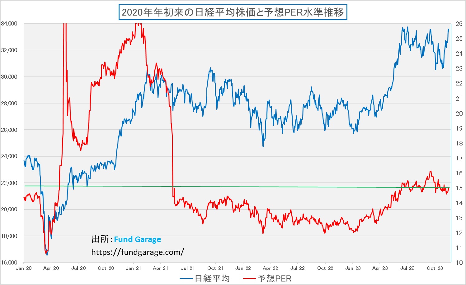 話の流れ的に、先に日本株市場のテクニカルな状況を確認しておきたい。と言っても、チャート分析を行うテクニカル分析ではなく、市場のファンダメンタルズ分析とでも言った方が正しいかも知れない。まずはバリエーション(割高割安判定)だ。