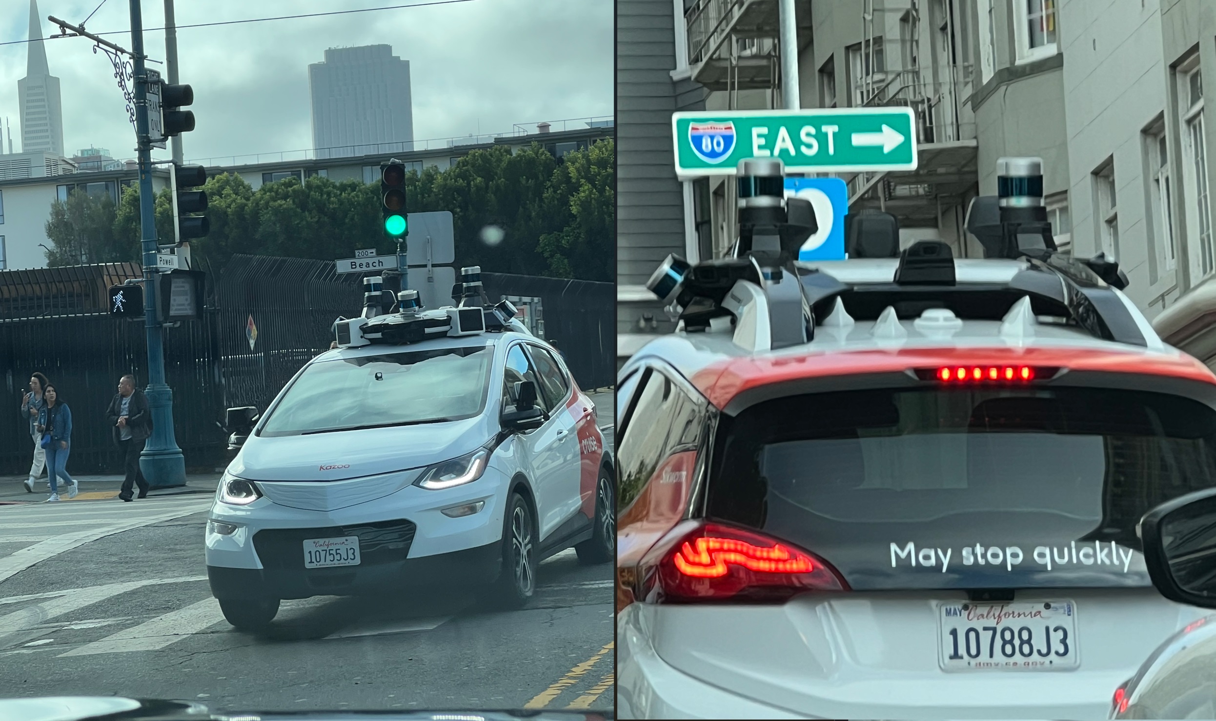※2026年に日本で導入されると言われている自動運転・無人タクシーは「ホンダ+GMクルーズ」という組み合わせ。写真はサンフランシスコ内を走っていたGMクルーズの無人タクシー。車両ナンバーの違いで複数台が運用されていたことが証明出来る。