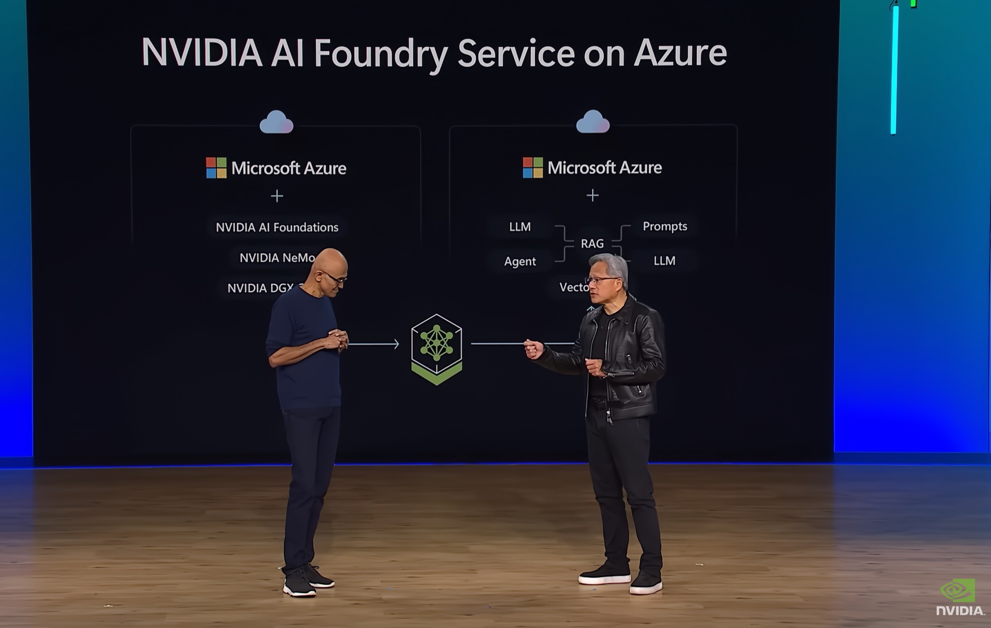 エヌビディアのWebサイトの方に下のようなページを見つけた。右側が誰で、左側が誰かなんて言う野暮なことは何も言わないが、NVIDIA のジェンセン フアンCEOが、Microsoft サティア ナデラCEOの基調講演に参加し、両社のパートナーシップの拡大と Microsoft Azure での NVIDIA AI ファウンドリ サービスの導入を発表した。