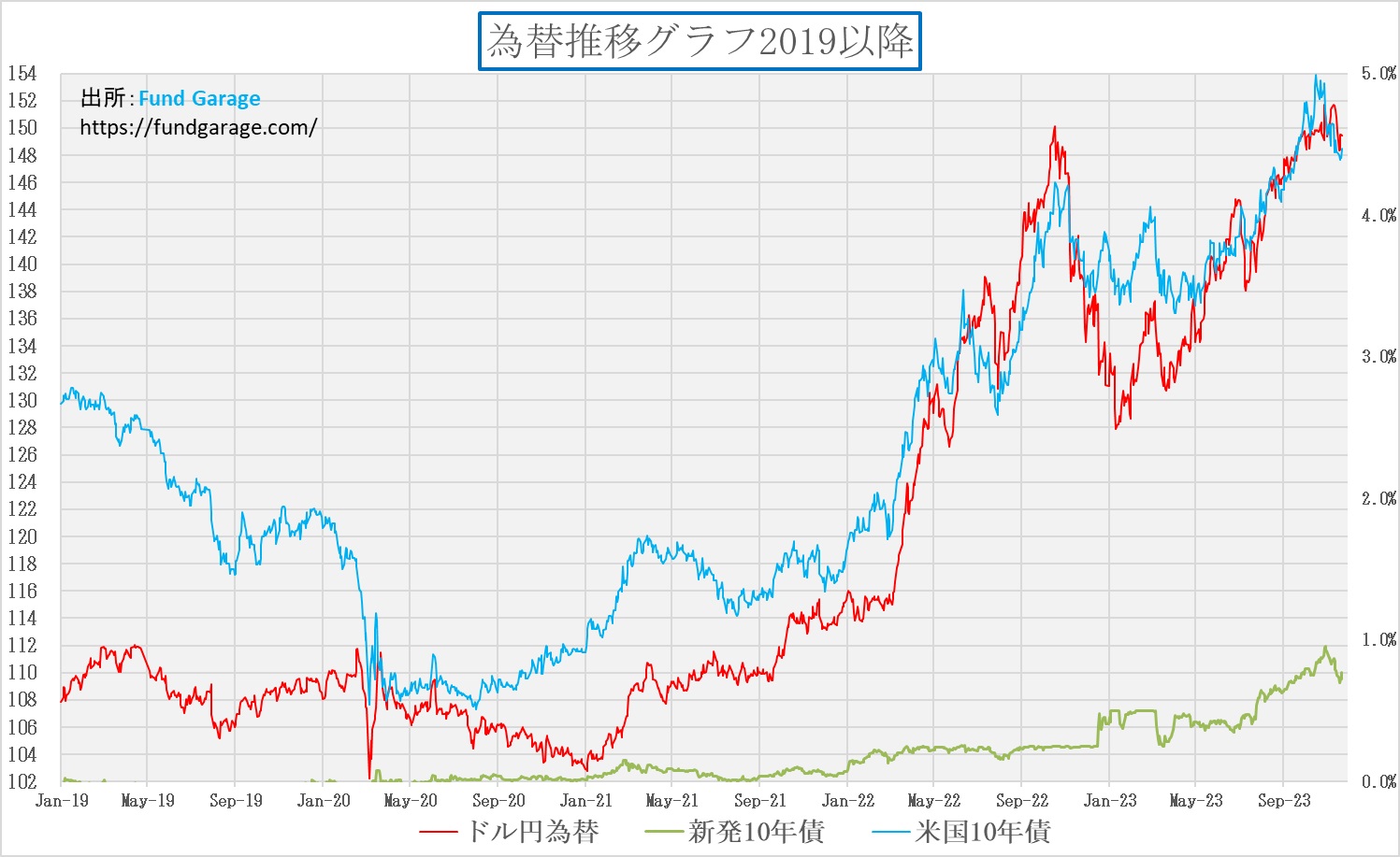 ならば日米金利差の縮小から為替は円高になったかと言えば、週明けの148.36円が最高値で、その後は円は売られて円安となり、週末は149.44円で終わっている。その背景は、米国債金利の低下に併せて、何故か、日本の10年債利回りも低下しているため、単純な金利差変動にはならないからだ。まあ、それでも多少は円高になったことで良しとすべきなのかも知れない。