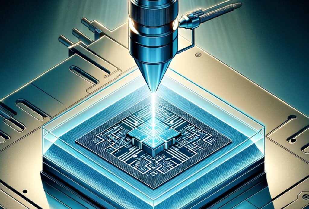 参考までに、ChatGPTにフォトマスクを通じて光源からウェハーに露光しているところをイラストして貰った。かなりデフォルメされていること、ウェハーではなく、既にパッケージにチップが載せられている絵になっているので、これ自体にも誤りがあるが、光源から光が放出されて、その間にガラスがあり、そして半導体に光が届いていることはお分かり頂けると思って採用とした。この光源からの光が透過しているガラスの部分、これが映画や8ミリビデオなどの映写技術に喩えると、正にその映像が記録されているフィルムの部分で、フォトマスクを投下した光源からの光はウェハーの上にその画像を描画する。これが最近の超微細加工においては、3ナノ、2ナノといった超極細の回路製作に使われている。一般に人間の髪の毛は太さ400ナノと言われているから、その細さはご想像頂けると思うが、クリーンルームの中の作業とはいえ、微細なゴミなどがこのフィルム役のフォトマスクに付いていたりすると正しい露光描画行えない。すなわち余計なものが映り込んでしまうということだ。或いは、フォトマスクの製造過程で失敗していても同じことだが、そうした問題がフォトマスク上に無いかを予め発見する役目が「半導体マスク欠陥検査装置」の役割だ。