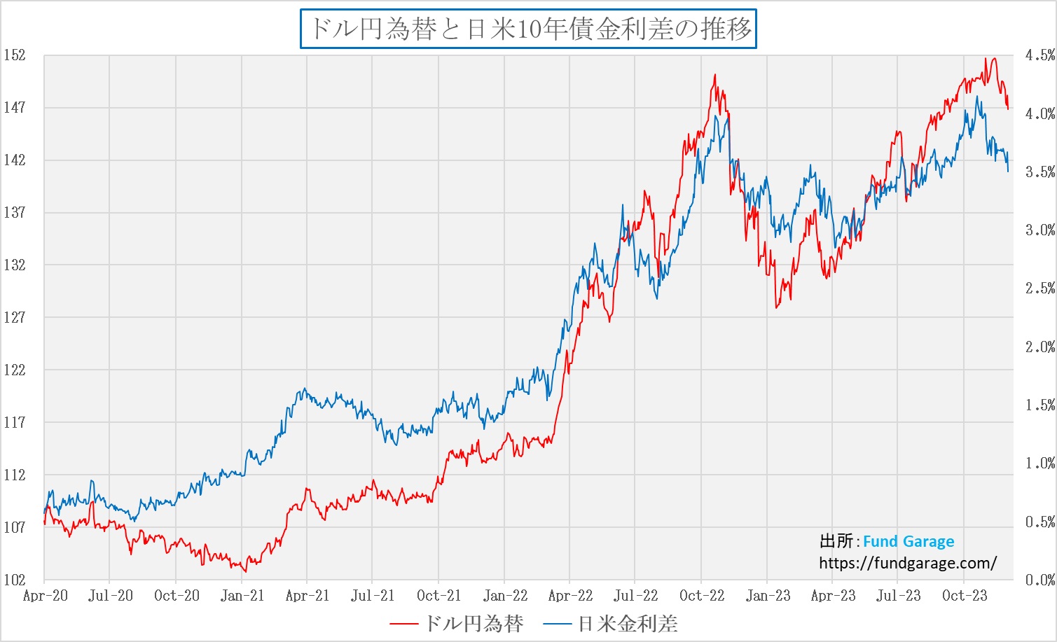 先週末時点の日米金利差は3.50%だ。同じような金利差の局面は直近だと9月頃になる。当時のドル円相場は145-146円前後。更に遡るとやはり1年程度前がこの水準となるが、その当時のドル円相場は140円台の攻防という感じになる。当時の金融環境と言えば、FRBはインフレ退治に0.75%ずつの利上げをガンガン行っている時であり金利に先高観がある時であり、一方で、日銀は異次元緩和をリードした黒田前総裁が「まだその時にではない」と一切利上げはおろか、YCCの解除さえも全否定した時。つまりこの先「日米金利差は更なる拡大傾向にある」と市場が思っていた頃だ。それに比べて現在はと言うと、FRBが利下げに転じるかも知れないというシナリオと、日銀がYCCの運用を弾力化し、更に俄かには信じ難いが「ゼロ金利解除」も視野に入ると債券市場からは声が聞こえるほど、逆に「日米金利差は縮小傾向に向かう」と考えられている状況で、市場のコンセンサスはまさに正反対となっている。ならば金利差の議論からすれば、本来は140円台の攻防に変わっていても「さもありなん」と思える環境だと言えるだろう。だとすれば、債券・金利市場と為替相場の動向は密接に関係があることから、何やら別の力が働いているとしか思えない。ただ私の「相場観」を言えば、ファンダメンタルズ(例えば購買力平価の議論など)からしても、金利差の議論からしても、2024年の為替の平均的な居所は140円台を超えて130円台になるのではないかと考える。