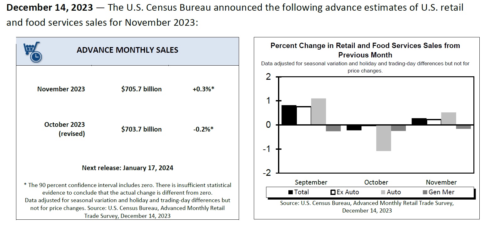 米国商務省の速報(12月14日付)によると、11月の小売売上高(季節調整値)は前月比0.3%増の7,057億ドルだった。ブルームバーグがまとめた市場予想(同0.1%減)に反して、2カ月ぶりの増加となった。どうやら既報の通り、ガソリン価格の下落がホリデー商戦での消費を後押ししたためとみられる。ただ、だとすると、この売り上げ増は年末商戦による一時的なもので、個人消費の底堅さが低迷する可能性は依然として残っているとも言える。なお、10月の小売売上高は前月比0.1%減(速報値)から同0.2%減に下方修正された。これらを見ても、FRBが早々に利下げに転じると見通すのは、楽観的過ぎ、時期尚早と思われてならない。