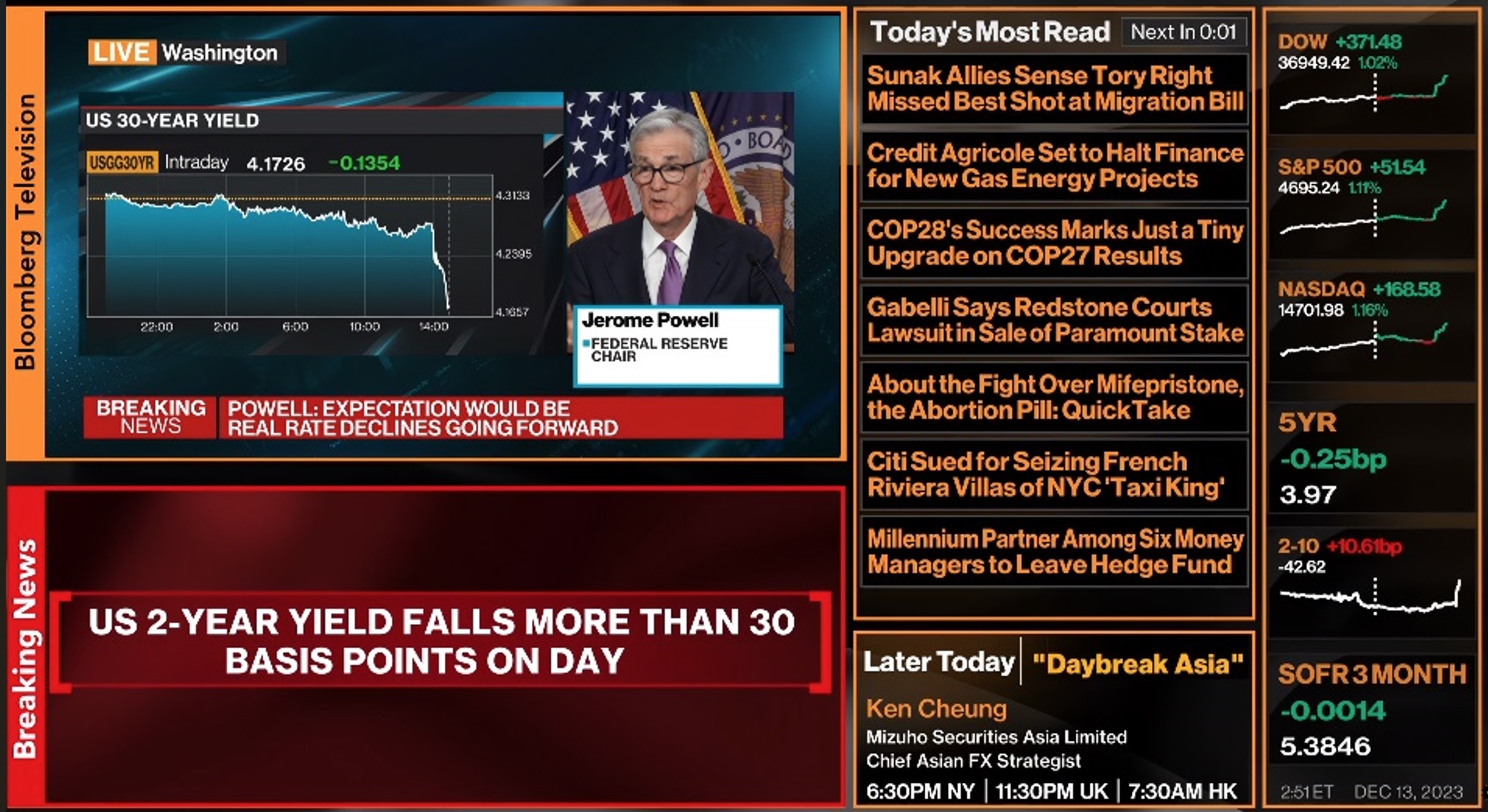 ただその一方で、他のメディアが情報を加工して報じる前に、一度はご自身でリアルタイムの面白みを味わって貰えれば良いなという思いもある。今回12月のFOMCは、プレスリリースの内容と、その後のパウエル議長の記者会見の内容と、認識の相違から大どんでん返しのように市場が慌てるという面白みは全く無かった。だが、プレスリリースの文字情報だけでは伝わり切らないFOMCの本意を耳にして市場が大慌てすることは、少なくとも2023年の殆どのFOMCがそうなっていた。夏時間の間は、時差が更に1時間ズレることもあり、NY時間の午後2時は日本時間の午前3時となってしまうので、かなりマニアックな人でもない限り、これをリアルタイムで追う人は居ないと思う。私が知っている限り、日本の現役金融マンでも殆ど居ない。だからこそ、基本的にはそんなことは私のような専門家に任せて、要点だけあとから把握されれば良い。ただ冬時間の間は、それが午前4時に変わるので、ゴルフや早朝のマリンスポーツに出掛けることを考えたら、あながち無理な起床時間とも言えなくなるかも知れない。勿論、それでもかなりマニアックではある。