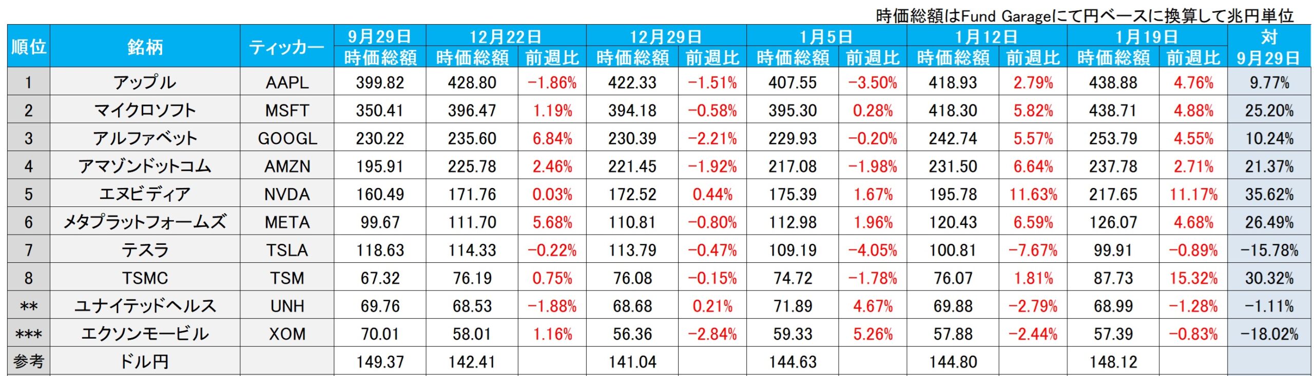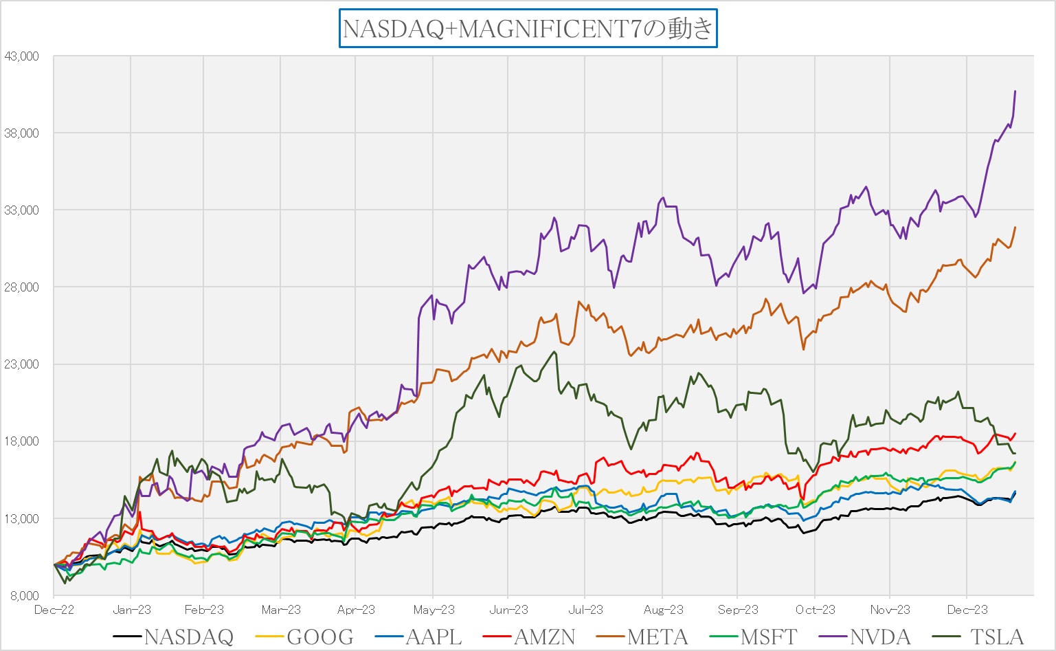 実はこの表には掲示していないが、日米株式市場の代表的な株価指数で先週際立って上昇したのが、フィラデルフィア半導体指数ことSOX指数だ。「対前週末比で+7.98%」とNASDAQのそれの約4倍、「年初来来通算で+4.79%」とそれでもNASDAQの2倍以上という、ずば抜けたパフォーマンスとなっている。この状態、何を一番評価すべきかと言えば、長期金利が上昇しているにもかかわらず、グロース株であり、高PER銘柄で構成される株価指数が上昇しているということ。一般的な流布されている理屈だと、長期金利の上昇時には、これらの銘柄は「相対的な割安感が薄れて売られ易い」と言われる。だが、このセオリーは昨年CY2023に明白に否定されたが、今年も同様に否定されそうだということ。