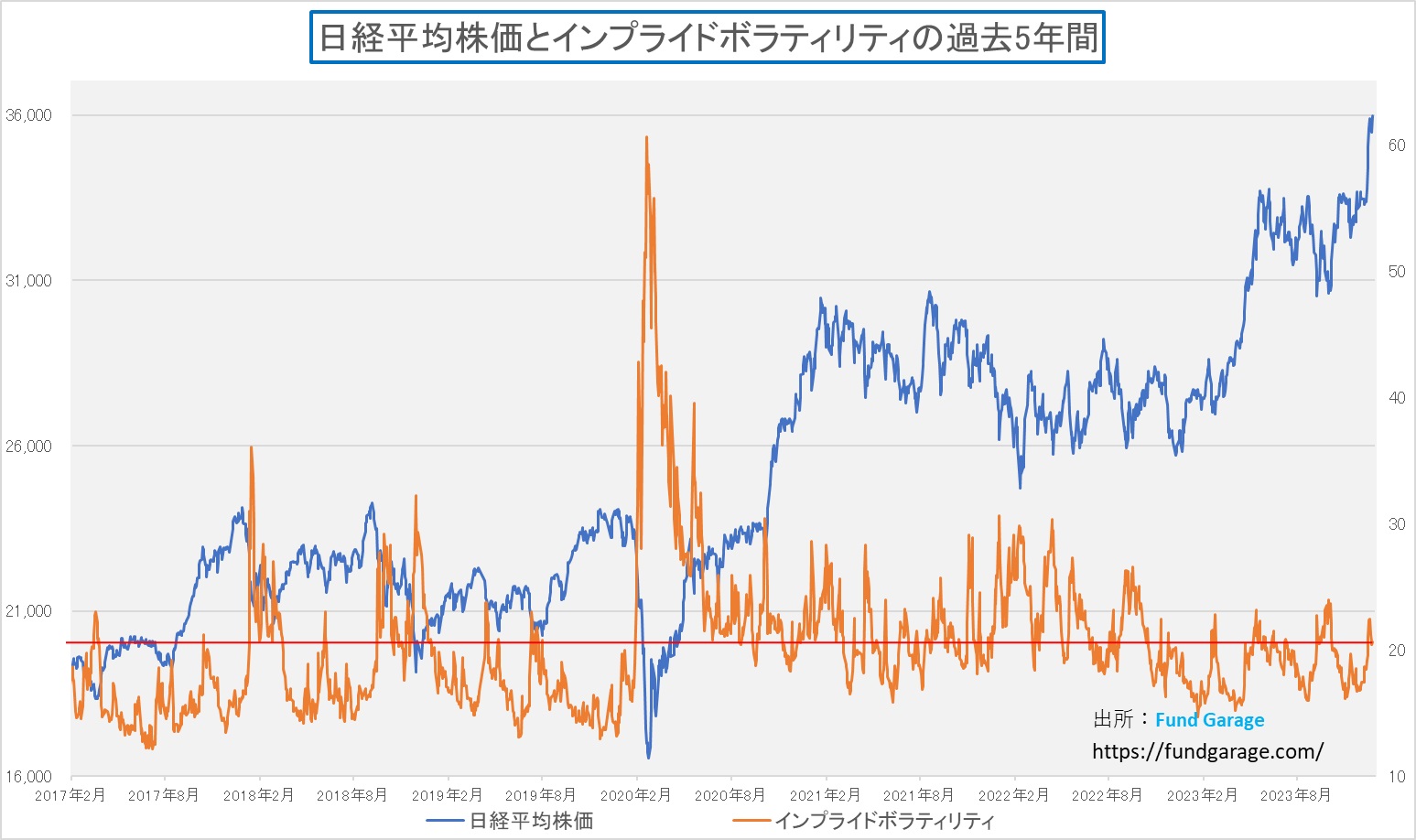 ならば最後に確認すべきは「日経平均のインプライド・ボラティリティ」の水準だろう。ということで下のチャートだが、セオリー的には1月15日につけた高値22.47からインプライド・ボラティリティが低下する過程で、原資産である日経平均が上昇したという風に言えなくもない。ただそれにしてはインプライド・ボラティリティの絶対値が低過ぎて足りてはいない。これらが何を織込もうとしているのかは、今週から本格化する米国企業の決算発表の中にあるのだろう。