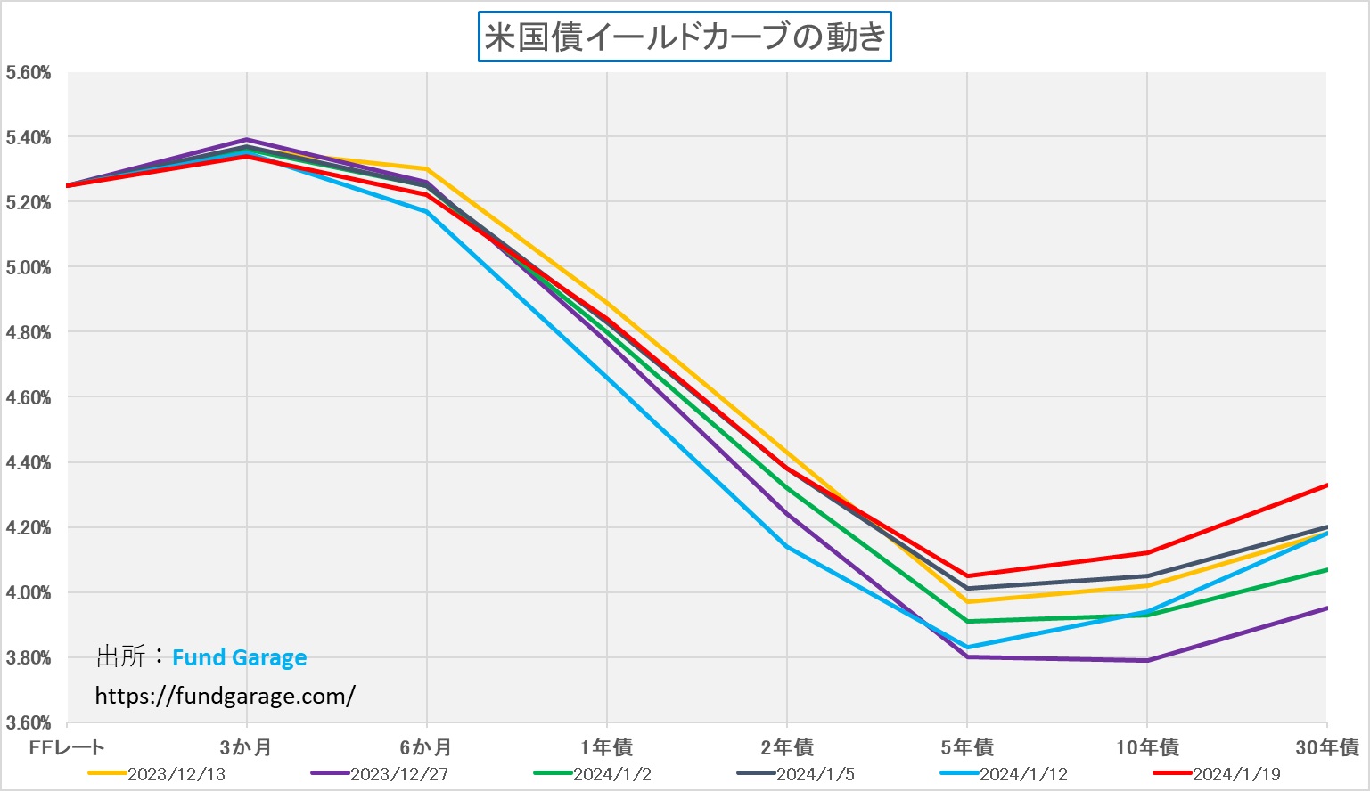 今までも繰り返しお伝えしてきたように、現在の米国の金利の期間構造(イールドカーブ)は長期金利と短期金利の水準が逆転した長短逆転現象、逆イールドの状態が1年半以上も長く続いている。この状態は本来的には極めて異例な状態、歪な金利の期間構造であることから、早晩、どこかで正常化しないとならない。まずはその現在のイールドカーブを再確認しておこう。