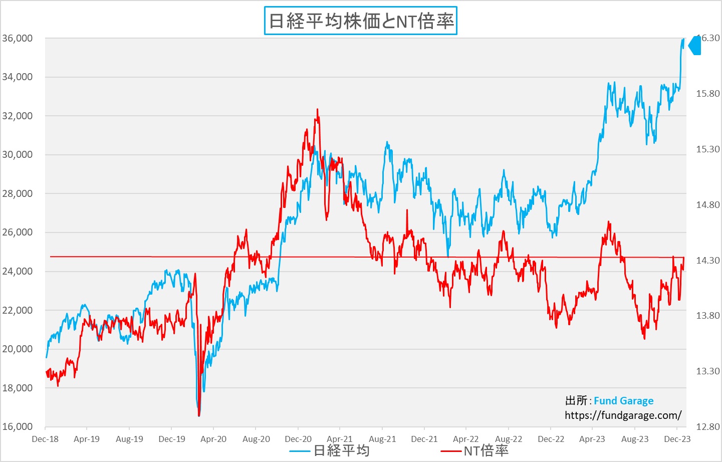 またバリュエーションの基本である予想PERベース見ると日経平均のそれは15.76倍と、これまた下のチャートで確認出来る状況で決して低いとは言えない。足許では15.76倍にまで膨らんでいる。ただそれよりも驚いたのが、東証プライム全銘柄のそれが15.94倍にまでなっていることだ。その高いPERの東証プライム、TOPIXは意味合い的には東証プライム同等と言えるが、それと比較してNT倍率が跳ね上がっているというのは、どうしても心穏やかではいられない。