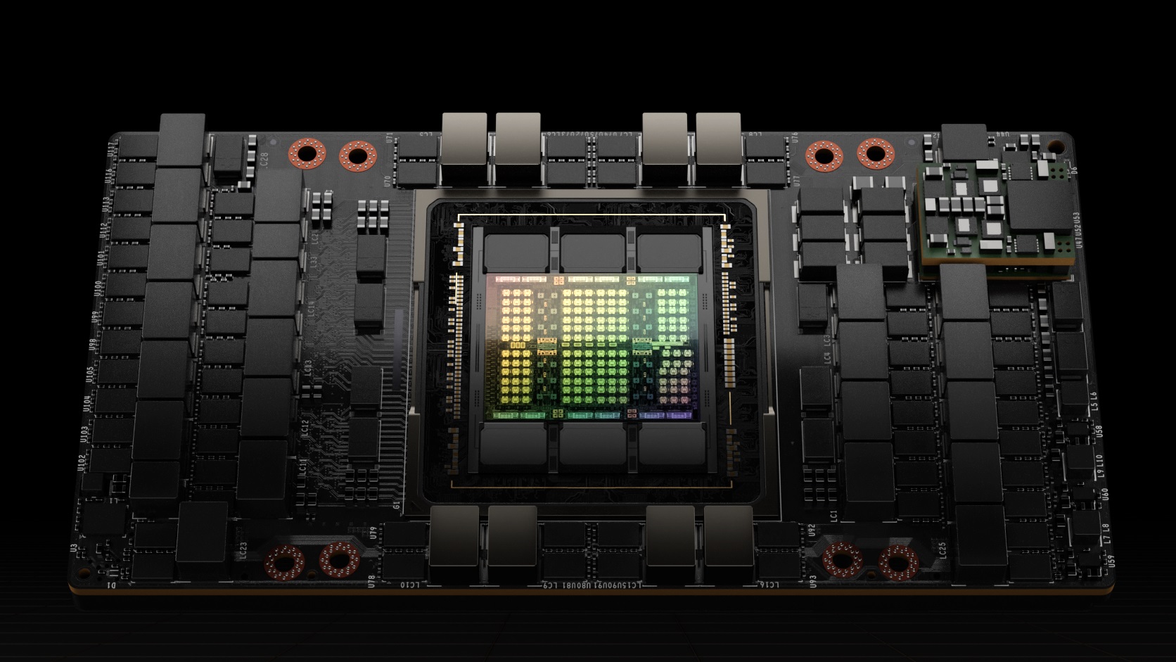 そう最初の写真のものだと、部品は半導体パッケージまで含めて、数個のものだ。そしてスマホやタブレットにも入るぐらいの大きさのイメージだろうから、重くても1キログラムなんてことは有り得ない。二枚目の写真は「NVIDIA H100 GPU 搭載の新型 SXM5 モジュール」というもの。所謂「サブストレート」と呼ばれる基盤の上に、諸々部品を取り付けてあるモジュールだが、これとて、実際には充分片手で持てるサイズのものだ。
