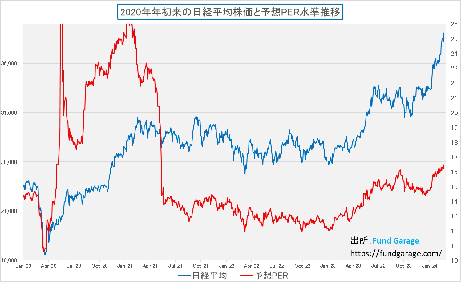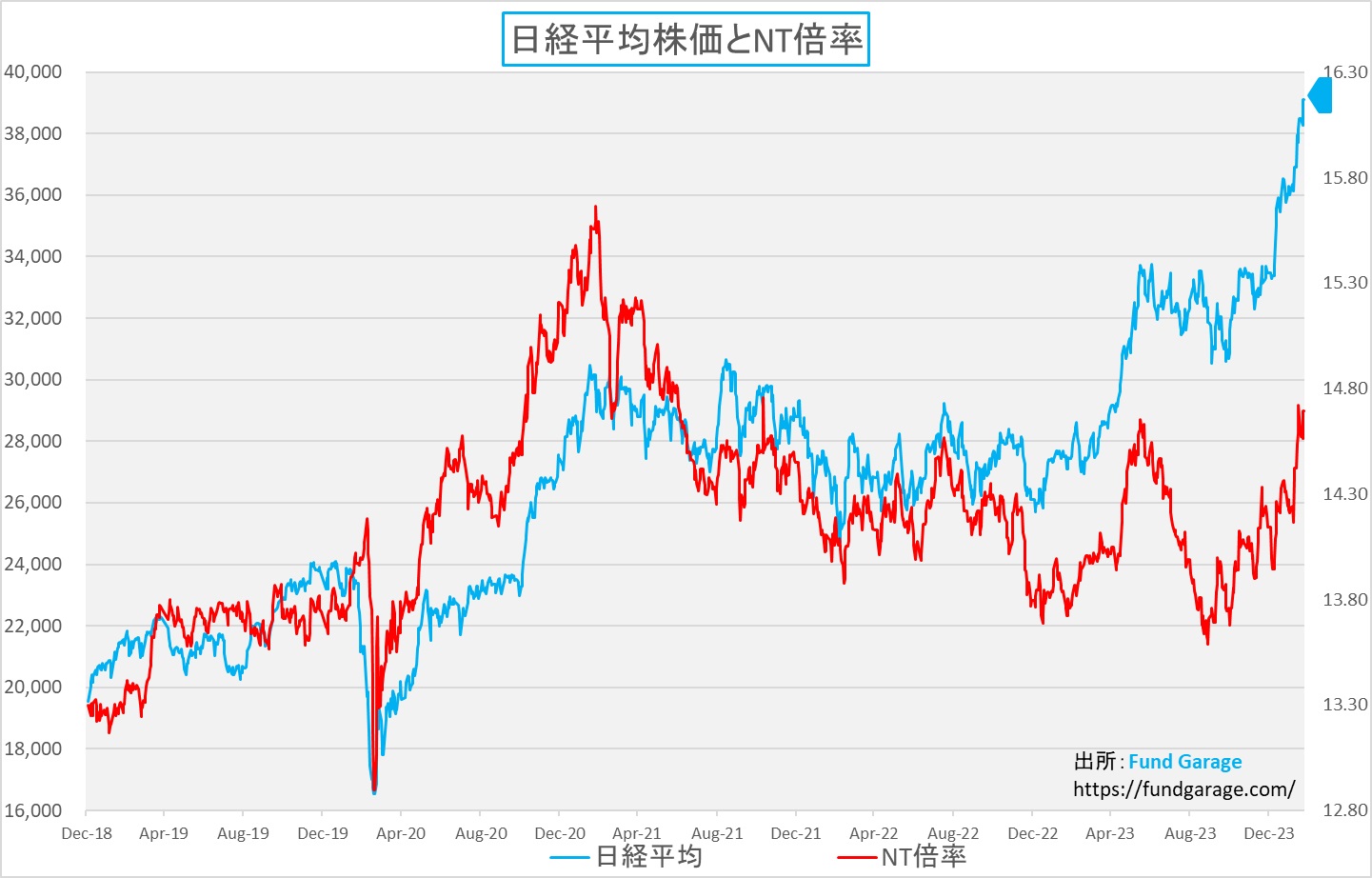 金曜日の日経新聞朝刊一面(後掲)には「日経平均 最高値」の超大見出しが打たれていたが、正直「だから何?」としか思えなかった。私自身、1989年12月末に日経平均株価が史上最高値38,915円をつけた時は既にファンドマネージャーとなっており、その数値と当時の情景には思い入れが無い訳ではない。だが、名前は同じでも、全く別物となってしまった現在の日経平均株価の絶対水準にはおよそ何の意味も見出せないからだ。実はTOPIXも歴史的に続いた計算ロジック「1968(昭和43)年1月4日の時価総額(8兆6,020億5,695万1,154円)を100として、毎日の時価総額を指数で表したもの」というロジックを変えてしまっている。2022年4月4日の東京証券取引所の市場区分の見直しにより東証一部が廃止され、「東証プライム」なるものに市場区分が変わり、ご承知の通り、これに伴い市場区分見直しが行われてしまっているからだ。母集団自体が廃止され、そして定義変更されたということなら、指数計算の根底が変わっている。ただそれでもまだ、TOPIXの方が日経平均株価よりは「ましな株価指数」かも知れない。だからかも知れないが、「34年振りの最高値更新」と騒いでいる市場関係者を見ていると、単に「昭和を懐かしむ年寄りの茶飲み話」程度にしか思えない。申し訳ないが、寧ろ滑稽にさえ見えた。ただその一方で、相変わらず「マニピュレート」し易い指数性格自体は変わっていないので、そうした回顧主義を煽るように(意図的に)持ち上げられた年初来の騰落率+16.84%の突出ぶりは、どこかで修正されるリスクを孕んでいるのも事実だ。歪めてしまったNT倍率も、高水準のPERも、日経平均株価の現状水準自体の脆さを証明している。