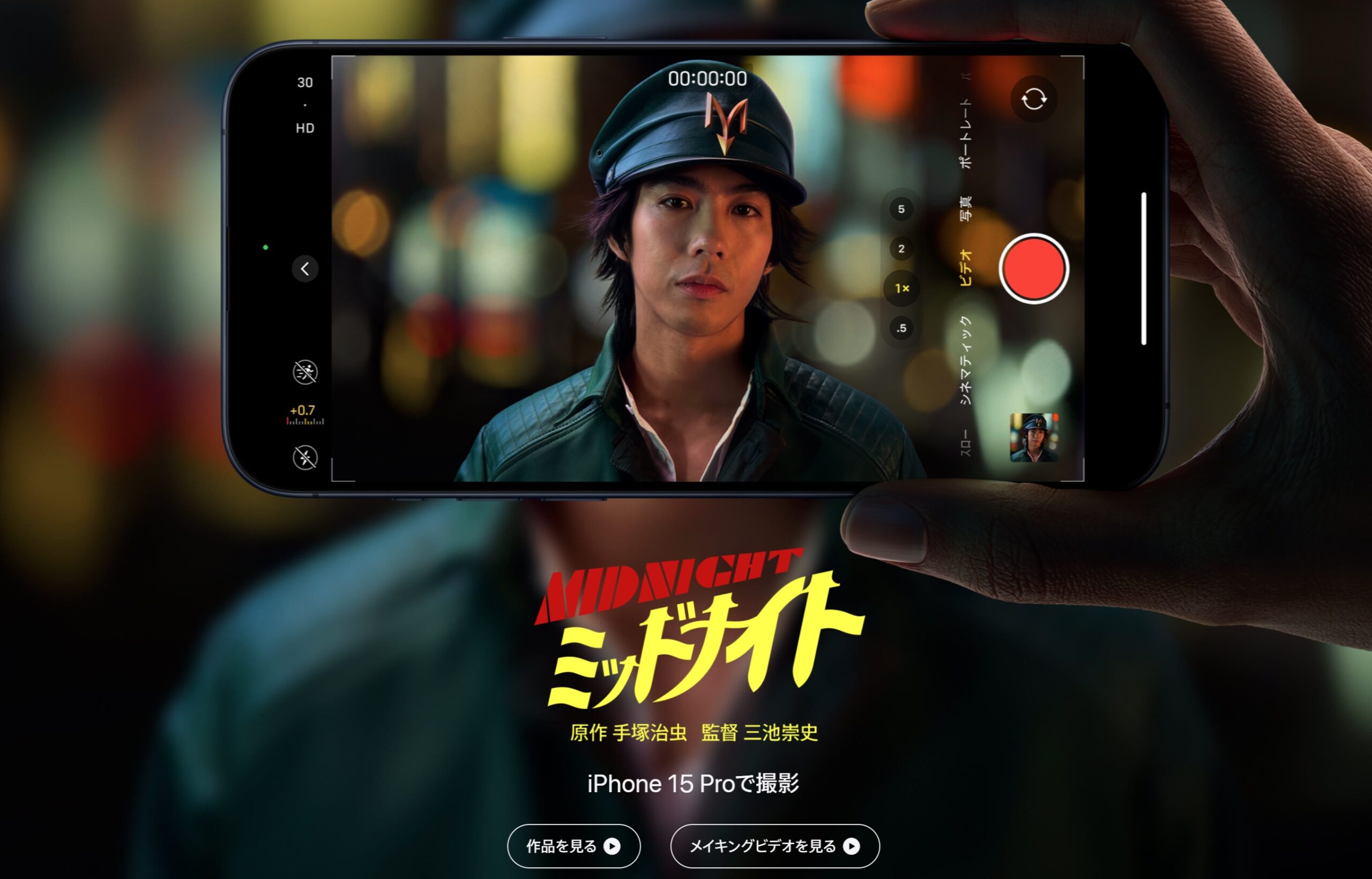 最近のアップルのWebページでiPhoneのページをみると、こんなものを見ることが出来る。iPhone15 proで撮影した映画の紹介だ。画像をクリックして貰うと、この画面が開くように設定してあるが、下段右側にある「メイキングビデオを見る」を先に見てから、左側の「作品を見る」を見ると、よりこの意味が分かって頂けると思う。最近、多くのYouTubeが動画撮影にiPhoneを使っているらしい。私の大好きなゴルフ系のチャンネルでも綺麗な4K映像がiPhoneで撮影されていると解説されている。