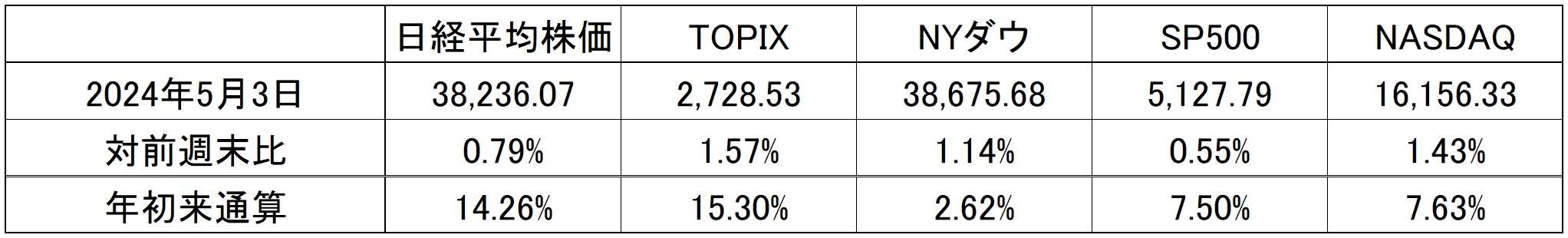 週末に発表された米国雇用統計は非農業部門雇用者数(事業所調査、季節調整済み)、市場予想は前月比24万人増だったが、実際は前月比17万5000人増加と予想比でかなり弱いものとなった。また失業率も市場予想の3.8%に対して3.9%に上昇。更に言えば、平均時給は前月比0.2%増加。市場予想の0.3%増を下回り、前年同月比では3.9%増加と2021年6月以来の小幅な伸びにとどまった。「ウォール街で高給を貰いながら、どうして毎回こんなにもエコノミスト予想というのは外れるんだ!」という個人的な憤りは脇に置いておいて、結局明らかになったことは、市場(とりわけデリバティブ市場とそれに踊らされているメディア)のセンチメントが単にボラタイルに変動するだけで、FOMCというか、FRBの考え方は当然のことながらブレることがあまりないということ。債券市場も為替相場も、当然株式市場も、上でも下でも兎に角どちらかに動いてくれない限り、投資銀行も、証券会社も、為替業者も儲からないから仕方ないのかも知れないが、日々、上に下にと大騒ぎするのはいい加減にしたらどうかと思う。だが、それに付き合ってしまう短期売買の投資家が多いのも事実だから両成敗なのかも知れない。これらの結果を受けた先週の株式市場の騰落率は下記の通りだ。これといった跛行色はあまり感じられない。
