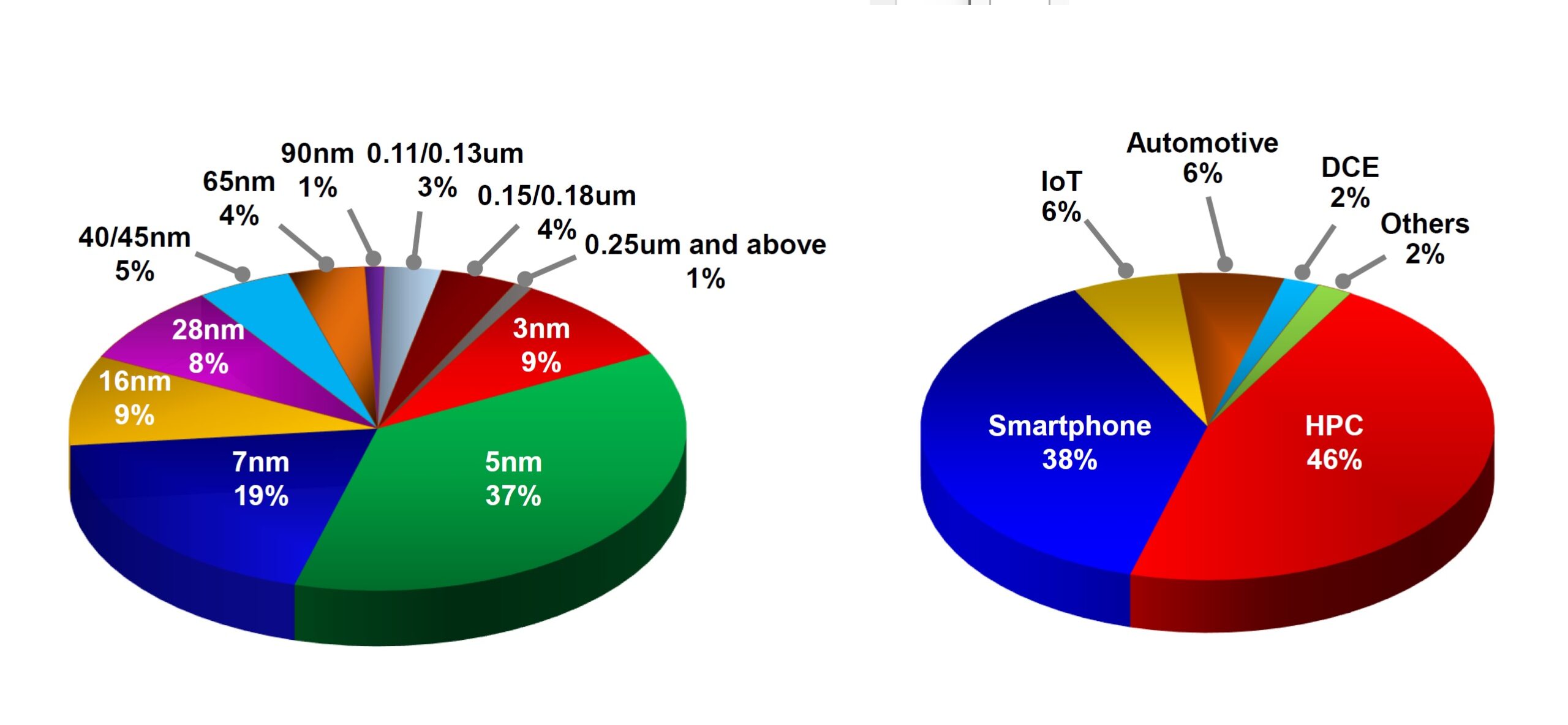 5月10日に世界最大の半導体受託生産請負企業である台湾積体電路(TSM)ことTSMCが発表した4月の売上高は前年同月比59.6%増の2,360億2000万台湾ドルとなり、対前月比でも20.9%増となった。この発表を受けて週末の半導体セクターは息を吹き返した。TSMC自身の株価も+4.53%の上昇となって決算発表前の水準を取り戻している。そもそも、足許の半導体関連株の調整のきっかけを作ったのがこのTSMCの1-3月期決算とそのガイダンス説明だ。不幸なことに、そこに露光装置の蘭ASMLの決算発表も重なり、市場に疑心暗鬼が生れた。ただ、ここにもひと言で「半導体受託生産請負最大手」と十把一絡げに「半導体」と括られてしまうことによる誤認、すなわち商品の奥深さというか、幅広さが関わる誤認が生じ易いということだ。つまり、半導体ファンダリー・ビジネスの動向から各半導体の動向を把握するにも、受託生産請負への正しい理解、もっと言うと、用途別の半導体の技術的先端度合いを知ることも大切だということだ。