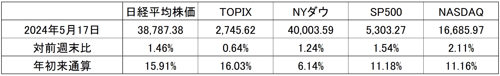 先週の日米株式市場の各種インデックスの騰落率は下記の通りとなっている。