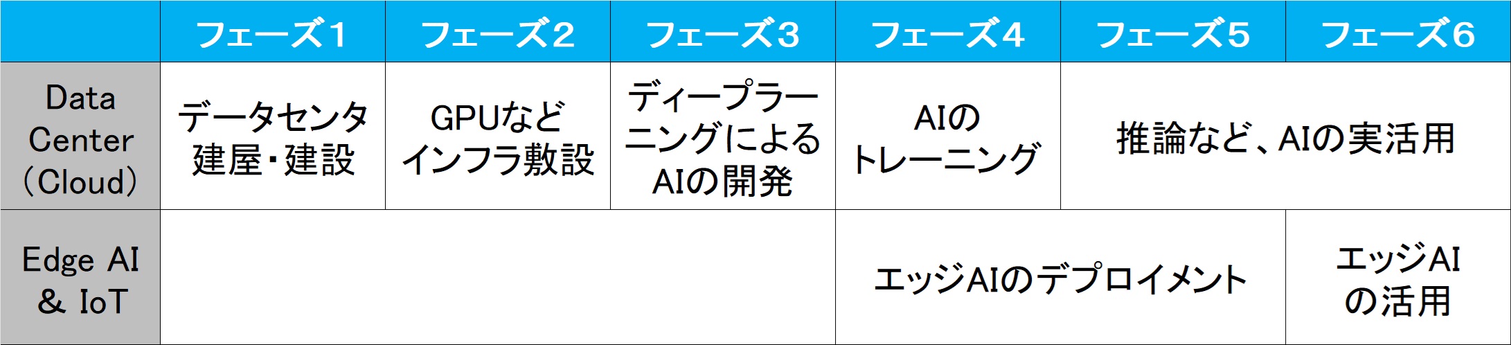 今話題のエヌビディアのGPUが関係するようなAIの発展には、下記のような数段階のフェーズを超えて行く必要がある。アマゾンAWSやマイクロソフトAzure、或いはアルファベットのグーグル・クラウド、国内ではさくらインターネットなどがAI用のデータセンターをこぞって新規投資を発表している段階と言うのは、下記のテーブルのフェーズ1だ。エヌビディアのGPUが足りないから、AMDのGPUも使うというのは、フェーズ2の話だ。OpenAIのChatGPT4の新バージョンChatGPTが出来たというのはフェーズ3の話、多くの企業がクラウド上のGPUを利用して使って独自のLLMを作ろうとしているのも当然フェーズ3、既存のGPT4やLLAMAを使ってカスタマイズするためにトレーニングしている段階はフェーズ4だ。