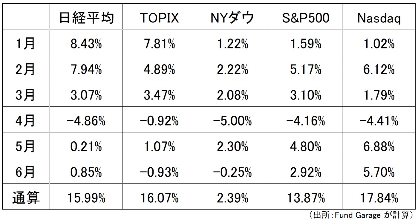 参考までに、6月の半分が終わった段階での月中騰落率の状況も確認すると下記のようになる。基本的には同じような状況だ。