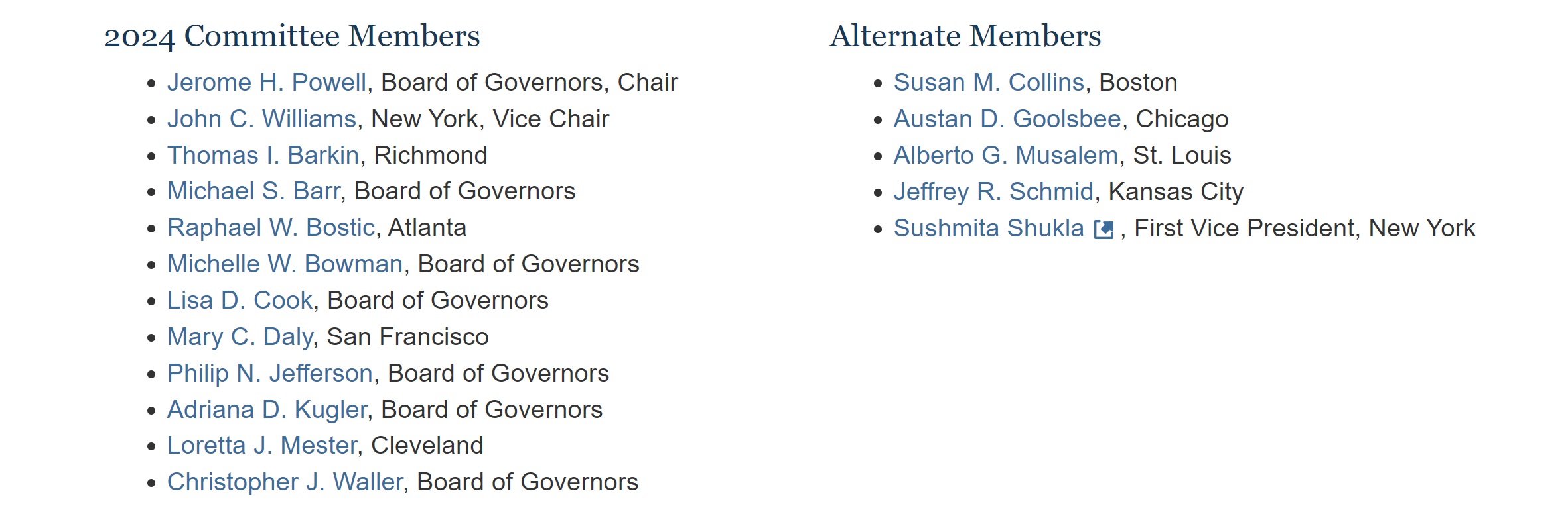 まずFOMCメンバーだが、今年投票権のあるメンバーは下記の通り。パウエル議長を含めて12人、その内訳は「FRB理事」が6人、そして地方連銀の総裁が5人となる。2024年はご覧頂ける通り、ニューヨーク連銀、リッチモンド連銀、アトランタ連銀、サンフランシスコ連銀そしてクリーブランド連銀の総裁が投票権を持ち、同席するのが更にボストン連銀、シカゴ連銀、セントルイス連銀、そしてカンサス連銀の総裁となっている。つまり全米の地方経済の実情をよく見ている人達が参加していることがわかる。