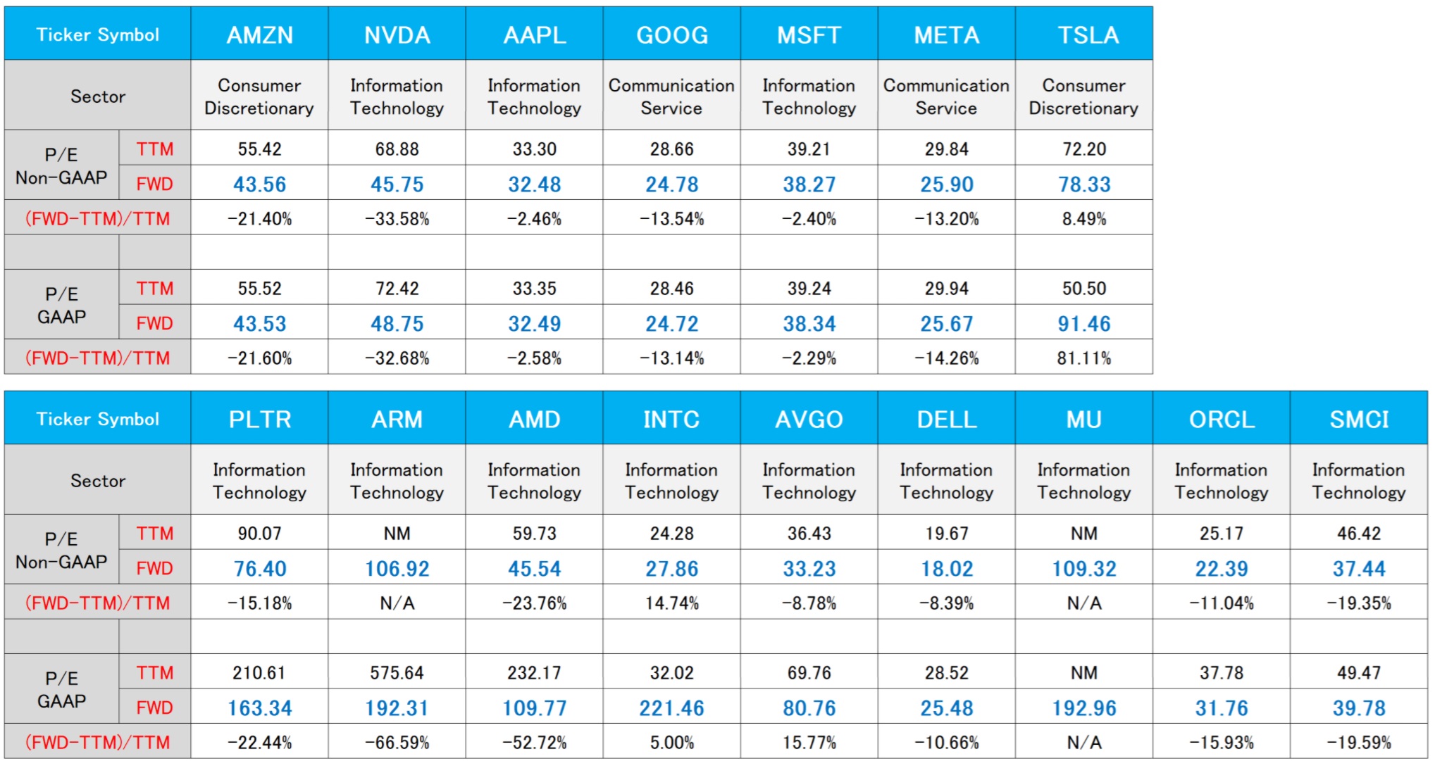 ここでひとつマイクロンテクノロジー(MU)の決算を見る上で注意しないとならないのは、足許の期、つまり今走っている期は2024年度第4四半期と既になっていること。つまり、10月からは2025年度入りするということだ。そこでCEOはこう言っている。「2025年を見据えると、AI PCやAIスマートフォンの需要とデータセンターにおけるAIの継続的な成長により、有利な状況が生まれ、利益率の高い製品への継続的なポートフォリオシフトによって収益性が大幅に向上し、2025年度に大幅な売上高記録を達成できると確信しています。」と。だが残念なことに、冒頭の2025年がCYなのか、FYなのかが話し言葉からは特定出来ない。ただそれでも「2025年度に大幅な売上高記録を達成できると確信」という以上、それはきっとその通りなのだと、マクロ的な背景を考えても同意出来る。つまり、ソフトバンク・グループの孫正義会長が狙うASIの一歩手前のAGIでさえ、それを実現するには、数兆のパラメータと推論用の高度なサーバーを備えた、ますます大きくなるモデルのトレーニングが必要になる。AI は、AI PC や AI スマートフォン、スマート自動車、インテリジェント産業システムを通じてエッジにも浸透する。従って、これらのトレンドは、DRAM と NAND の需要の大幅な増加を促進し、マイクロンは、AI がもたらす数年にわたる成長機会から半導体業界で最大の恩恵を受ける企業の 1 つになると考えているとするサンジェイ・メロトラCEOのコメントに、私は反対する方法が思いつかない。因みに、マイクロンテクノロジー(MU)について「PERが高過ぎる」というコメントを聞く時があるが、確かに現時点のNon-GAAP FWD PERは109.32倍となっており、高いと見えるかも知れない。だが、実はこの数値、決算発表前は153.96倍にまで跳ね上がっている。逆に言えば、FWD(予想PER)ベースで2/3まで低下したということ。PERの何をどう比べるのかは投資家個々の自由だが、153.96倍が109.32倍にまで低下した事実は知っておいても損は無いだろう。