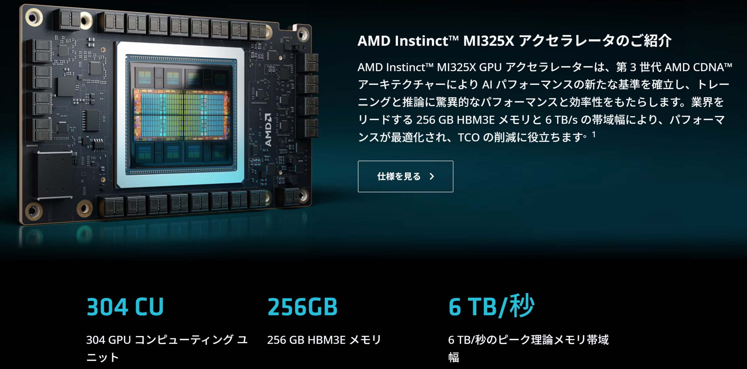 そんな中、AMDも先週10日に「AMD Advancing AI 2024」というイベントを行った。そしてデータセンター、クラウド、AI エンタープライズ コンピューティングを高速化するために特別に設計された AMD EPYC 9005 シリーズ プロセッサー、第 3 世代 AMD CDNA アーキテクチャにより AI パフォーマンスの新たな基準を確立し、トレーニングと推論に驚異的なパフォーマンスと効率性をもたらすというAMD Instinct MI325X GPU アクセラレータ、オープン エコシステム内で、高パフォーマンススループット、輻輳回避、レイテンシの短縮など、最も要求の厳しい AI ワークロードを処理するように設計されているAMD Pensando Pollara 400 NIC、更には次世代 AI PC 向け世界最強のNPUを搭載したRyzen AI 300 シリーズ プロセッサなどを発表した。AMD Instinct MI325X GPUはその日を発売日としていた。しかし、残念ながら、その日のAMDの株価は4%を超えて急落した。