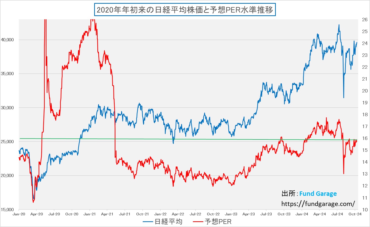 そしてPERの推移の方を見てみると、これもやはり先週末よりも更に上昇して週末終値は15.77倍。円高によって、一時期は今期の予想為替145円をも下回る水準が続いたことで、FY2024の通期業績予想は下方修正される可能性が高いが、そうなれば、PERは更に上昇し、株価の割高感が際立つだろう。とは言え、トヨタ自動車(7203)のPERは既に7.73倍にまで低下しており、東証が目を光らせているPBRに関しては既にピッタリ1倍の水準だ。日本の完成車メーカー、取分けトヨタ自動車については、メディアが総攻撃(半ば印象操作とも言えるほど)で「トヨタはBEV(電気自動車)で出遅れている」と批判していたことに加え、去る2024年7月31日には型式指定申請における不正行為が新たに7車種で認められ、国土交通省から是正命令を受けるなど、国ぐるみでバッシングが続いたこともあり、加えて、中国のBEV向けの国策支援が席巻したことから業種としても沈んで低PER銘柄群となっている。(※この点に関しては、相当株式市場には誤解があると考えている)。何れにしても、「日経平均株価」というのは、現時点では30,000円前後、良くて32,000円前後までがフェアバリューだ。
