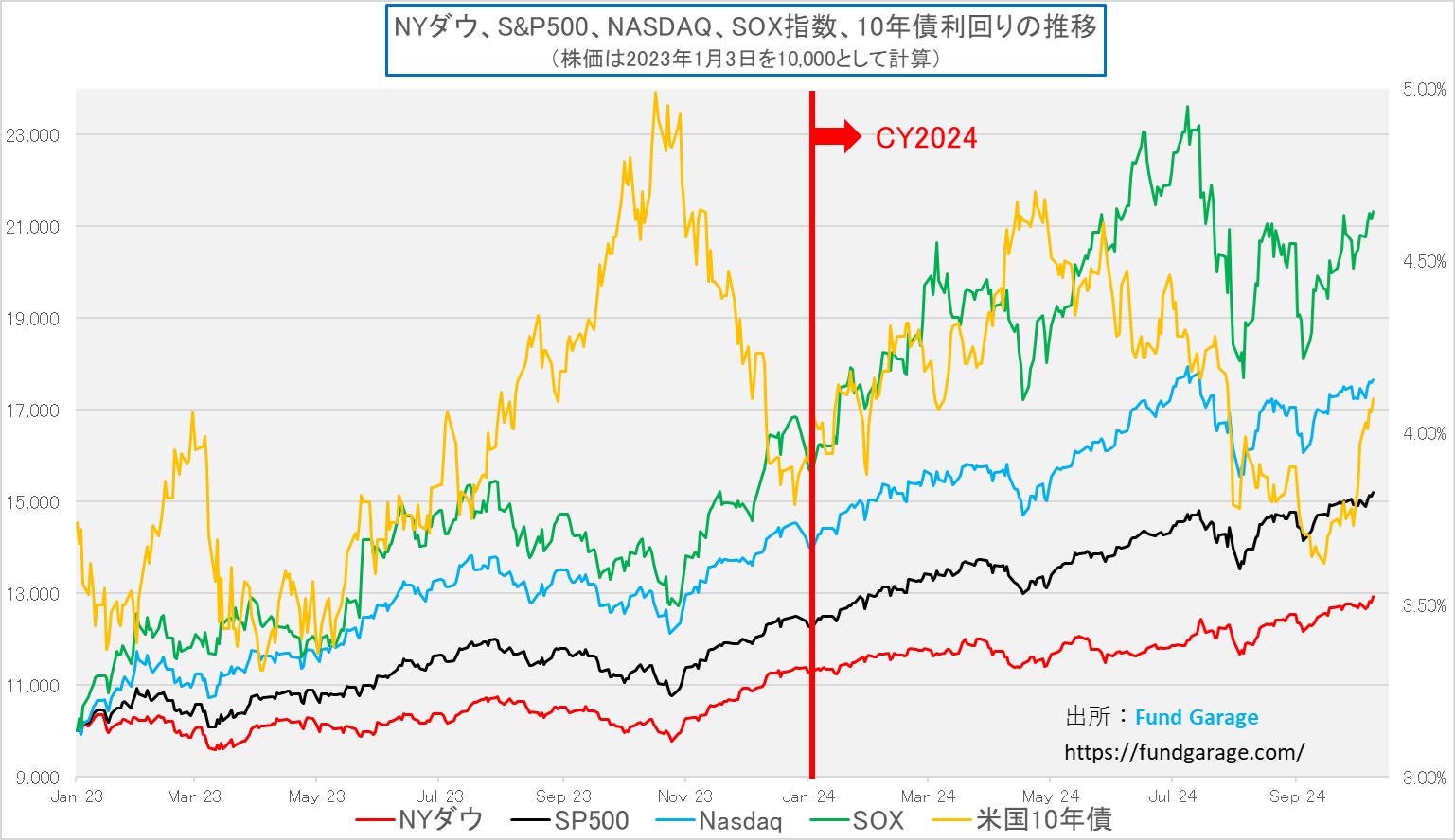 たとえば、FRBが将来の利下げを示唆し、OIS市場ではその期待が織り込まれていたとしても、長期債市場ではインフレや経済成長が依然としてリスクとして捉えられていれば、長期金利はそれほど大きく動かない可能性がある。だが今回のこの局面では、2022年7月から続いた逆イールド状態が解消されて順イールドに向かうかの如くに長期金利が上昇し始めている。これはインフレや経済成長のコントロールをFRBが上手に行っているという市場の安心感と信頼感の表れかも知れない。つまり、アメリカ経済は日本経済の現状とは異なり、順調な状況を維持しているということだ。変にOIS市場の動きを語る論調に惑わされない方が良いと思われる。