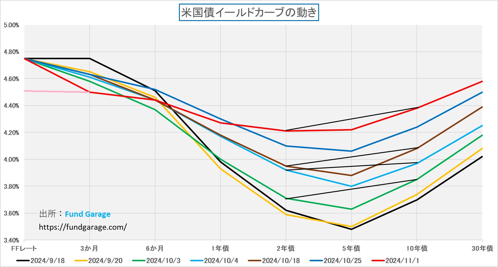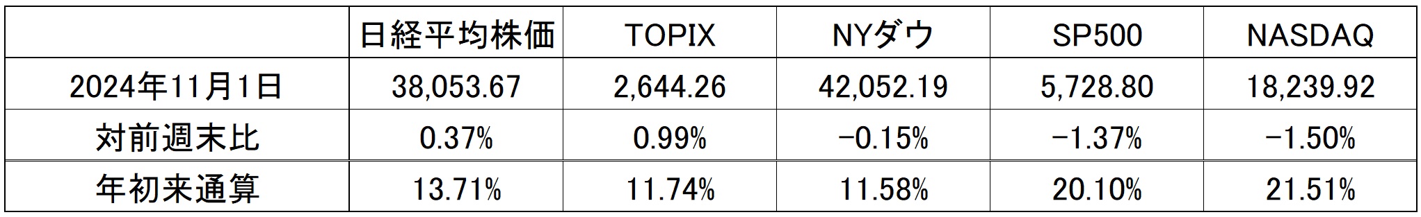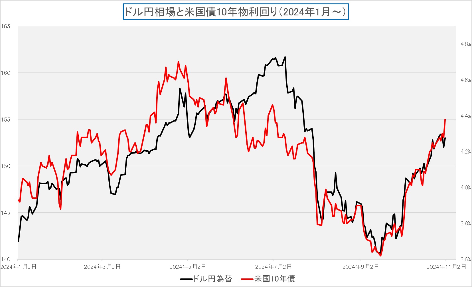 「米国労働統計局が11月1日に発表したところによると、10月の非農業部門雇用者数はほぼ横ばい(+12,000)、失業率は横ばいの4.1%でした。医療および政府部門の雇用は引き続き増加傾向にあり、派遣社員サービスは雇用を失いました。」という書き出しではじまる米労働省発表の雇用統計、この解釈には様々な意見がある。ただ、少なくとも週末のNY市場ではこの結果を好意的に受け入れた。「『きょうの雇用統計は我が国の大恥だ』『衰退したのは眠れるジョー(バイデン大統領)と噓つきカマラ(ハリス副大統領)が仕事をしなかったからだ。』と、共和党の大統領候補であるトランプ前大統領はさっそく攻撃材料に使った。」とも報じられているが、市場はこうした内容は無視をした。