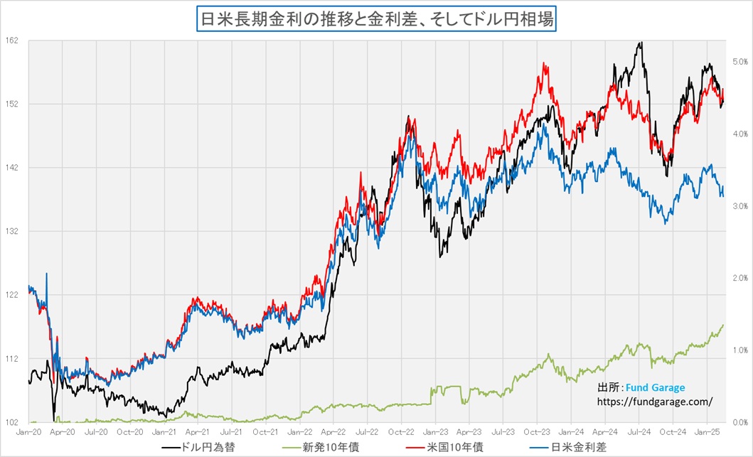 基本的な考え方として、為替相場は「相場」と呼ばれるぐらい、やはり投機性が強く、合理的に動いているようで合理性など無いというのが基本認識だ。だからこそ、為替を語る多くの人は、何らかのイベント(端的にはFOMCや日銀の金融政策決定会合など)に絡めてテクニカル分析で語ることが多い。かつては貿易収支や経常収支の話で動いたものだが、近時「貿易赤字」という単語はホワイトハウスから流れてくることはあっても、市場の話として聞こえることは殆ど無い。そして何とかの一つ覚えのように「日米金利差」というキーワードが使われる。