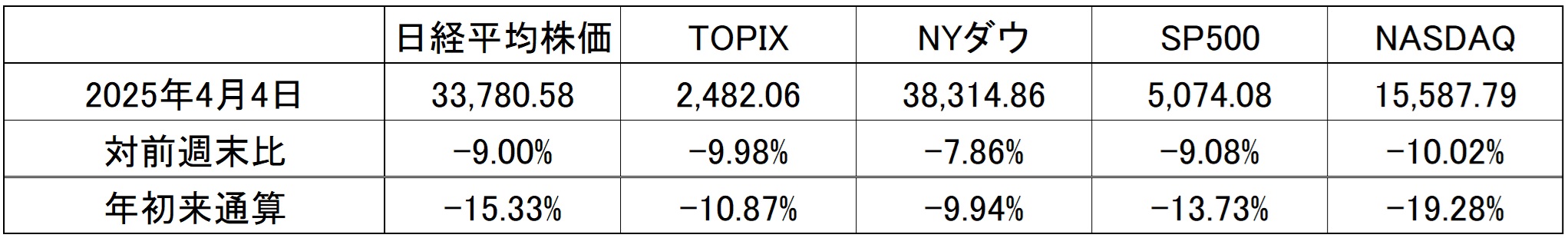 おそらく先週のマーケットは、2025年という年の中でも特筆される週となる。きっと「○○○ショック」などとネーミングもされるだろう。S&P500は週間で9.1%下落、NASDAQは10%を超える急落となり、VIX指数は金曜日に45を超えて、リーマンショックやパンデミックの時以来の水準に達した。まさに世界同時株安と呼ぶにふさわしい相場展開であった。だが、こうした暴落を目の当たりにしたときこそ、投資家には冷静さが求められる。センチメントが過剰に振れた時、市場は往々にして「構造を見失う」。今起きていることを、単なる政策リスクに矮小化するのではなく、企業の現場が何を見ているか、そして政策の本質がどこにあるのかを、しっかり見定めておく必要がある。