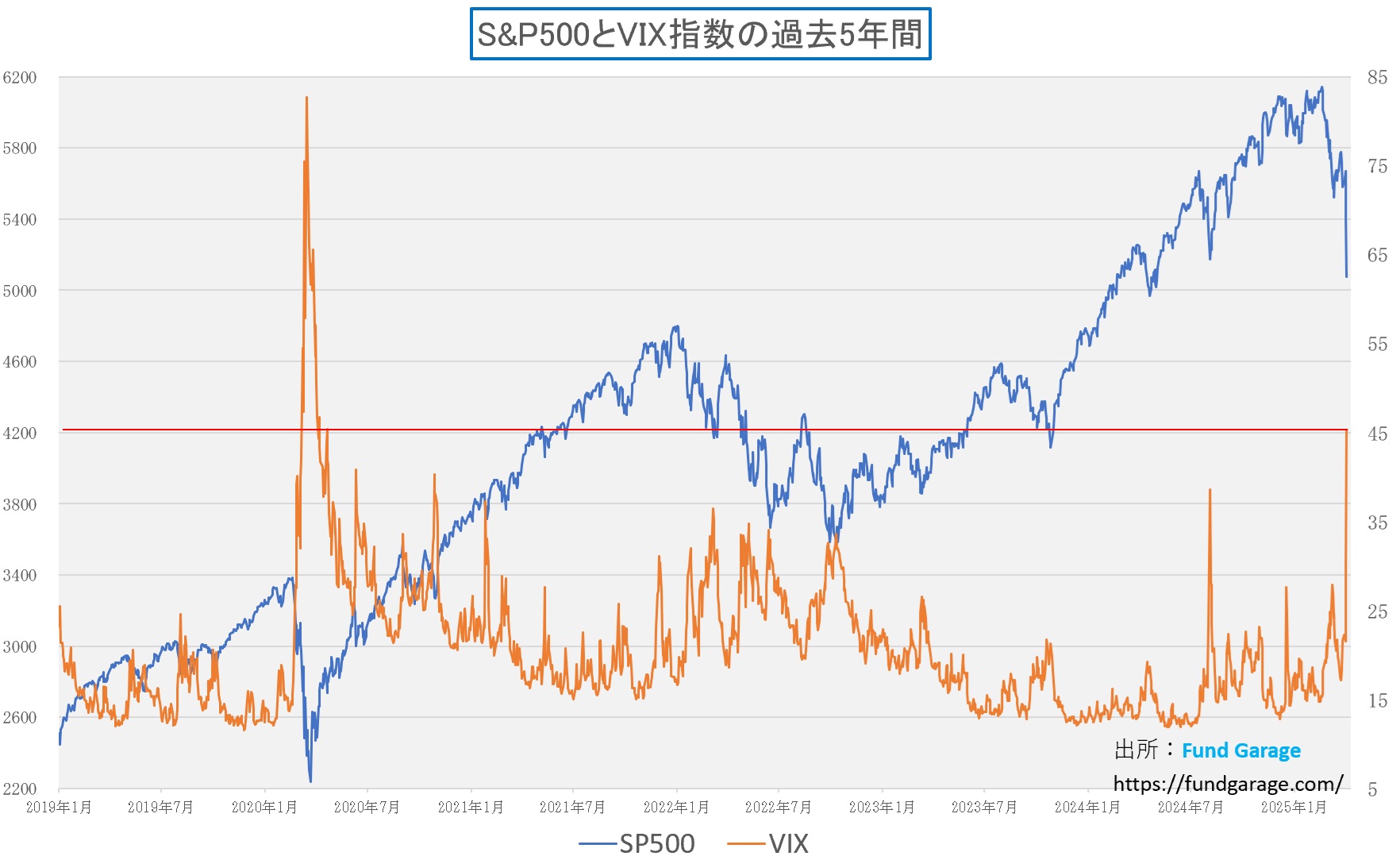 予てから、インプライドボラティリティと株価の相関関係は負の相関にあり、インプライドボラティリティが急騰すると、株価は底を打つとお伝えしてきたが、かなりな水準にまで、少なくとも、米国市場のS&P500株価指数と、そのインプライドボラティリティである恐怖指数ことVIX指数は、間もなく、その局面を迎えることを示唆しているように見える。週末に45.1にまで急騰したVIX指数の水準は、明らかにパンデミック・ショック以来の水準にまで急騰しているのだから。