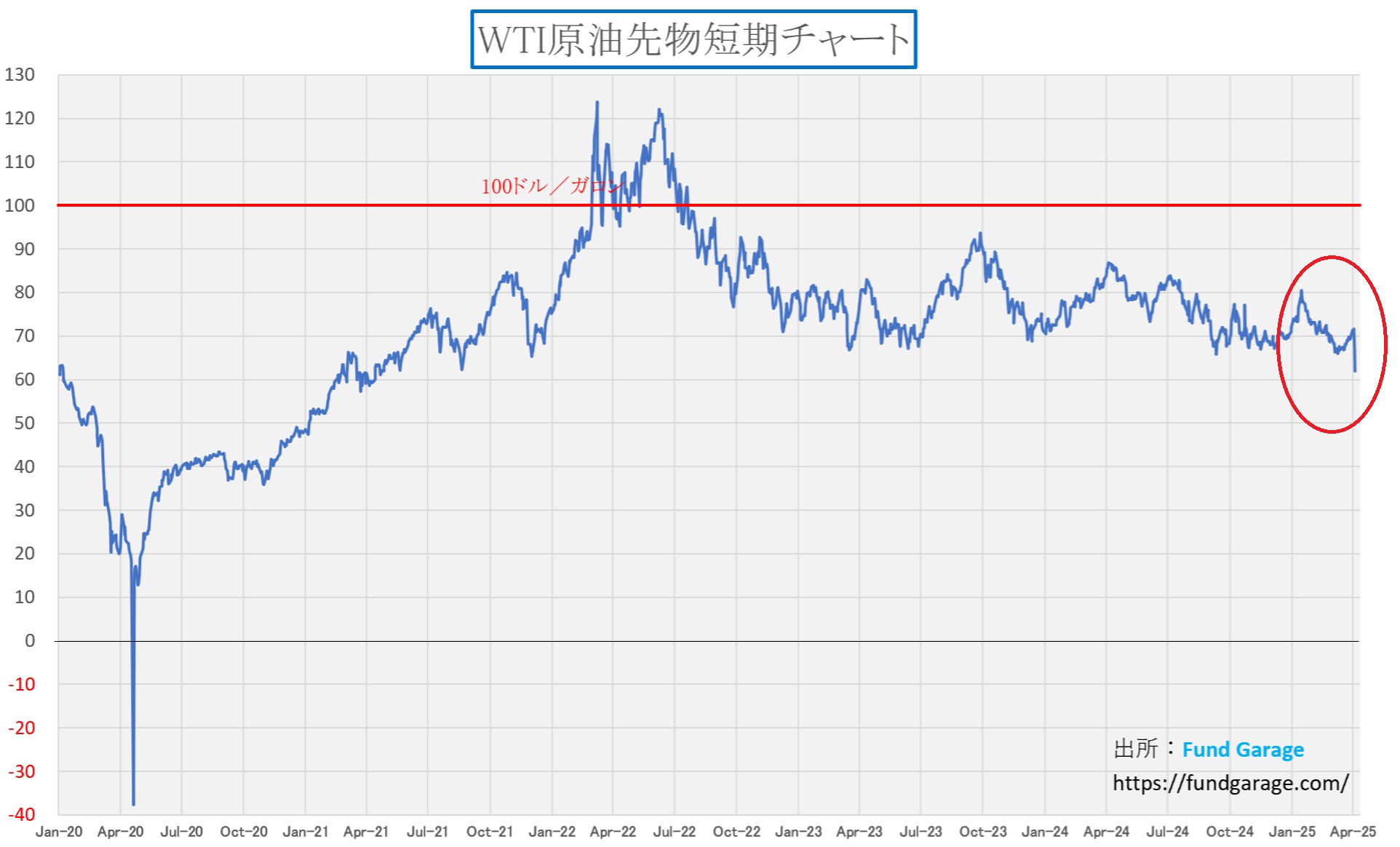 マーケットでは、「関税→コスト増→インフレ」という図式が繰り返し語られるが、現実はもっと複雑である。たしかに一部の輸入財において価格が上昇する可能性はあるが、それは米国経済全体の物価水準を左右するような構造的波及とはならない。たとえば、WTI原油は足元で61ドルまで下落しており、エネルギーコストの大幅低下はむしろインフレ圧力を緩和する方向に働いている。また、米国の雇用指標は堅調で、非農業部門雇用者数は22.8万人の増加、新規失業保険申請も低位で推移している。