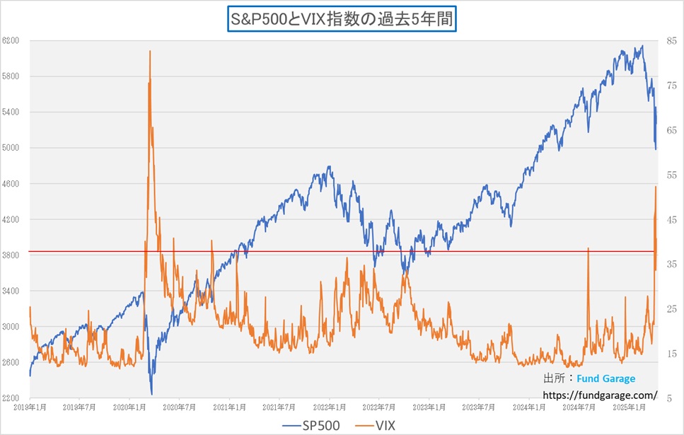 2025年4月初旬、市場は一時的なパニックに包まれた。トランプ大統領による新たな一連の関税措置が発表され、対中125%関税、一律10%の相互関税、日本を含むG7諸国への適用可能性――これらが一斉に流れたことで、株式市場、債券市場、為替市場が連鎖的に大混乱。特にハイテク株や輸出関連株が売られた。恐怖指数ことVIX指数も急騰、ザラ場では60を超える水準もあったが、終値ベースで8日に52.33と、2020年3月のCovid-19のパンデミック・ショックに次ぐ水準にまで急騰した。週末時点の終値は37.56と、低下したと言っても、昨年8月の日経平均のメルトダウン時とほぼ同水準のままとなっている。