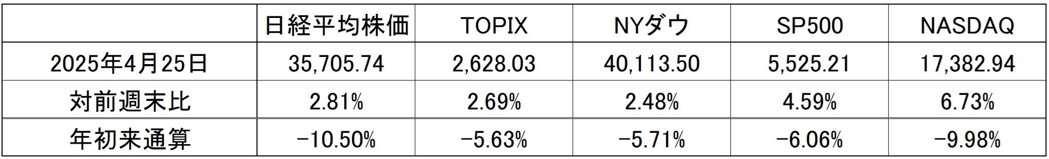 そんなかんなの流れの集大成が、下の日米株式市場の代表的な株価指数の騰落率だ。表には無いが、フィラデルフィア半導体指数ことSOX指数は先週+10.94%の上昇となっている。また、NASDAQ総合の4月の月間騰落率は僅かながらも+0.48%とプラスに転じた。