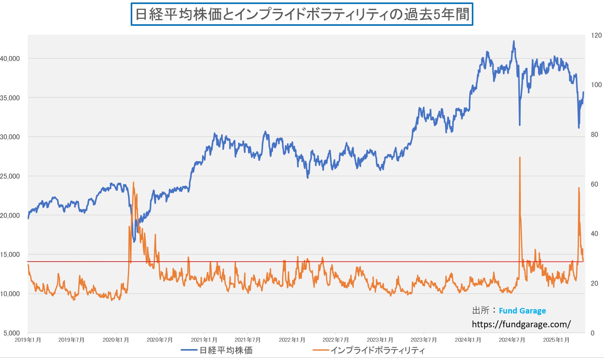 続いてこれが日経平均とそのインプライド・ボラティリティ。同じように、日経平均株価は4月7日に最高値58.39をつけて、31,136円で底を打っている。但し、その後の市場はどうかと言うと、株価は徐々に下値を切り上げる傍らで、多くの悲観論、ネガティブコメントなどが大手を振って跋扈した。ラジオ日経に出演時に「底打ちしたと思いますか?」といきなり問われて、「おそらく」と肯定したのだが、真に受けてくれた人は多くは無かったかも知れない。
