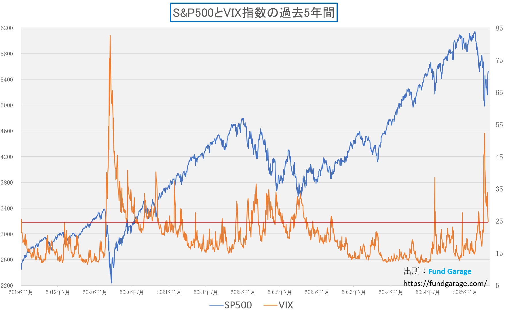 確認しておくと、やはり今回も株価指数とインプライド・ボラティリティの負の相関関係の見立ては、きちんとWORKしたことが分かる。下のチャートはS&P500と恐怖指数ことVIX指数の推移。市場が急落してVIX指数がザラ場ベースで60を超え、引値ベースでも52.33を付けた時、きちんと底値となっていることが分かる。