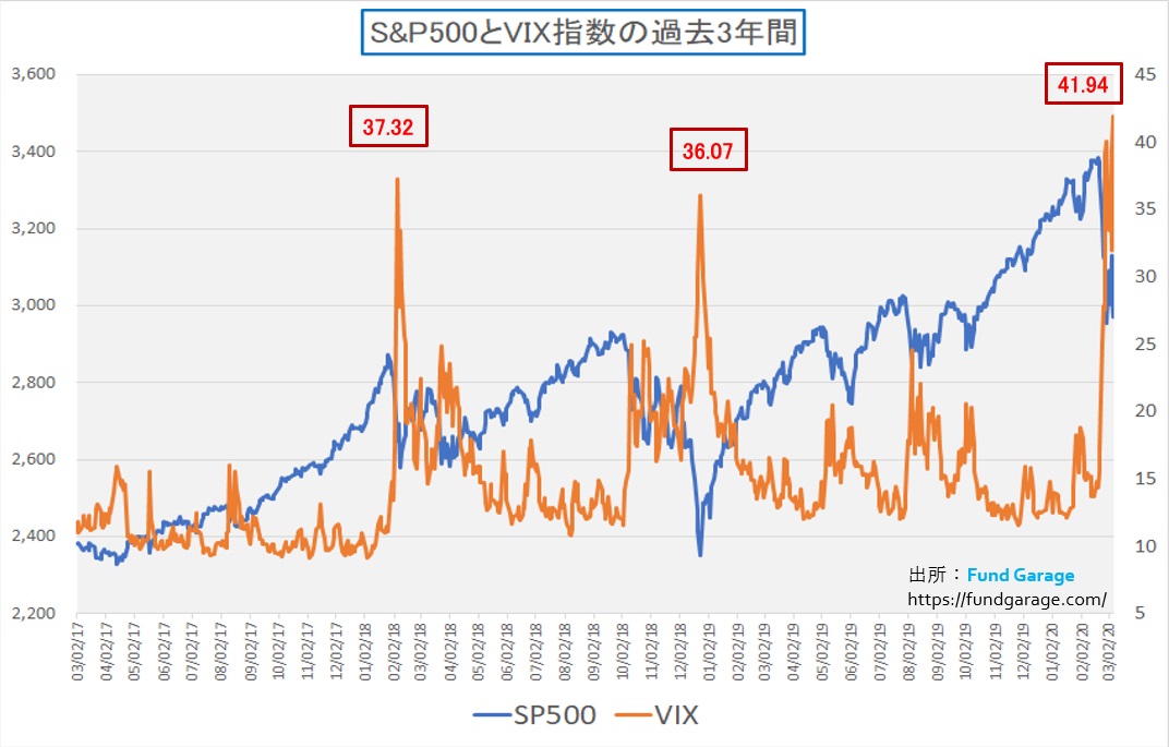 先週末、見事に過去3年の急落時のピークを上回る41.94までVIX指数は上昇している。是非、他の期間の動きも見て頂き、明確な負の相関関係をご実感頂きたい。
