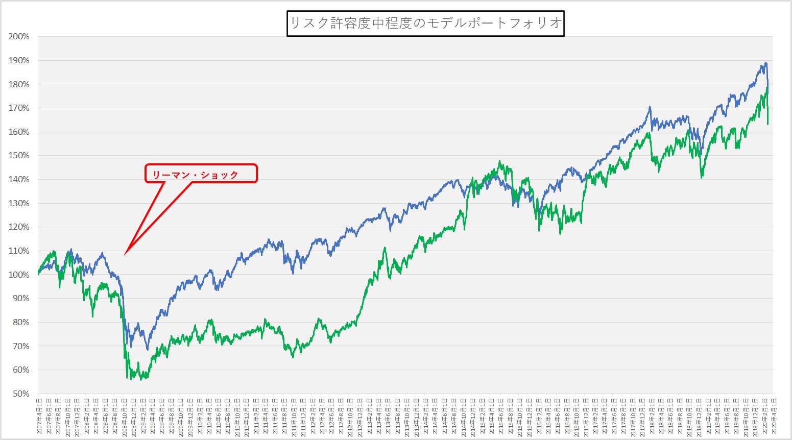 Fund Garageが国際分散投資用に提案する「リスク中程度のモデル・ポートフォリオ」の2月末までのパフォーマンスは、ドル建てポートフォリオで設定来が月末175.96%となり、前月末の184.36%から騰落率で△4.58%の下落となった。円建てポートフォリオは設定来が163.17%となり、こちらも前月末170.30%から△4.19%の下落だ。こちらは為替が108.95円から109.40円まで円安になったことが若干のプラス要因となっている。