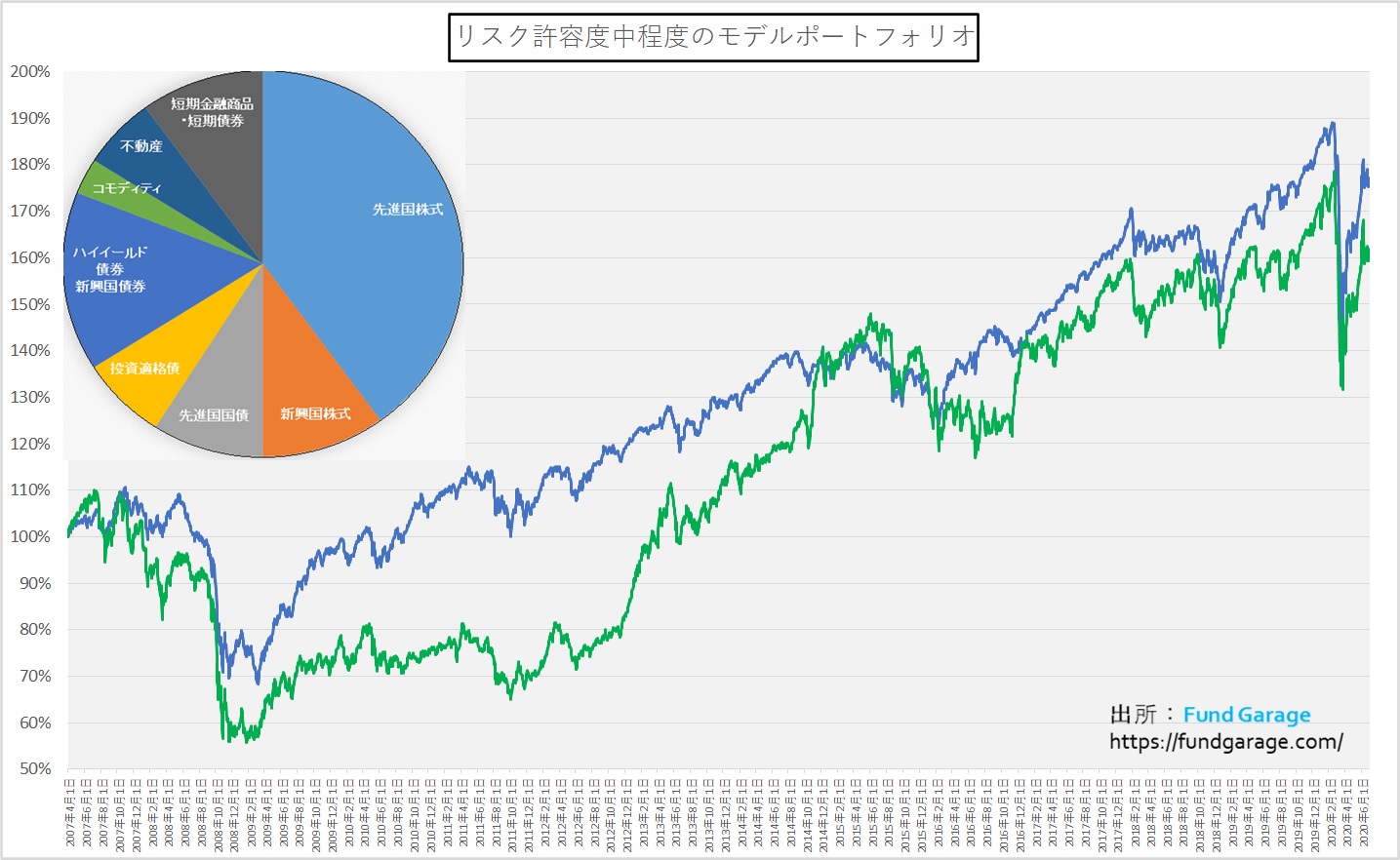 余談はさておき、「リスク中程度のモデル・ポートフォリオ」の6月末までのパフォーマンスは、ドル建てポートフォリオで設定来が月末177.12%となり、年初来のパフォーマンスも△4.08%まで回復しました。前月末の172.96%からは騰落率で見て+2.43%の上昇となりました。円建てポートフォリオは設定来が161.75%となり、こちらも前月末157.11%から+2.98%の上昇です。こちらは為替が107.14円から107.72円まで円安になったことがプラス要因となっています。
