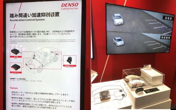 新聞でも話題になっていたが「踏み間違え加速抑制装置」の展示が下記。正直最初はあまり目新しくは無いなと思ったのだが、パネルを読んでみると「新車時オプション」ではなく、今乗っているクルマにもつけられるものらしい。既にハイブリッド車など、制御系が電子化されている部分の多いクルマに搭載可能。これもう少し早く普及していたら、池袋での事故や「プリウス・ミサイル」などと揶揄されることは無かっただろうと思うと残念だ。つまりニーズは強い。