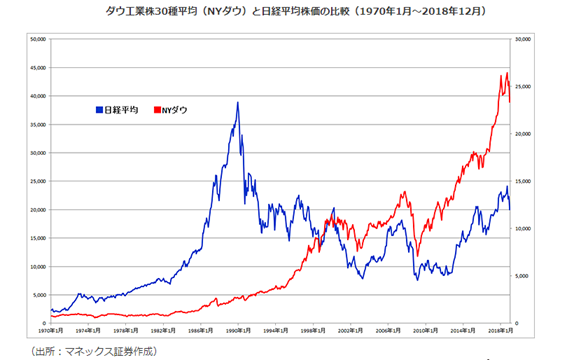 「日本株投資で儲ける!」ということが如何に難しい話か、というよりは、右肩上がりを続ける米国株投資で儲ける方が如何に着実な話であるかということが、こんな単純な比較からだけでもお分かり頂けるだろう。