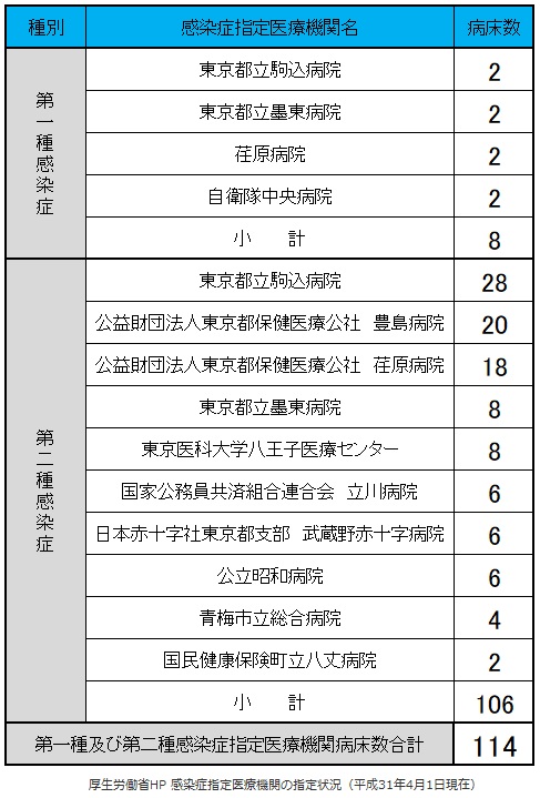 更に東京都だけで見ると下記の表の通り僅か114床しかない。