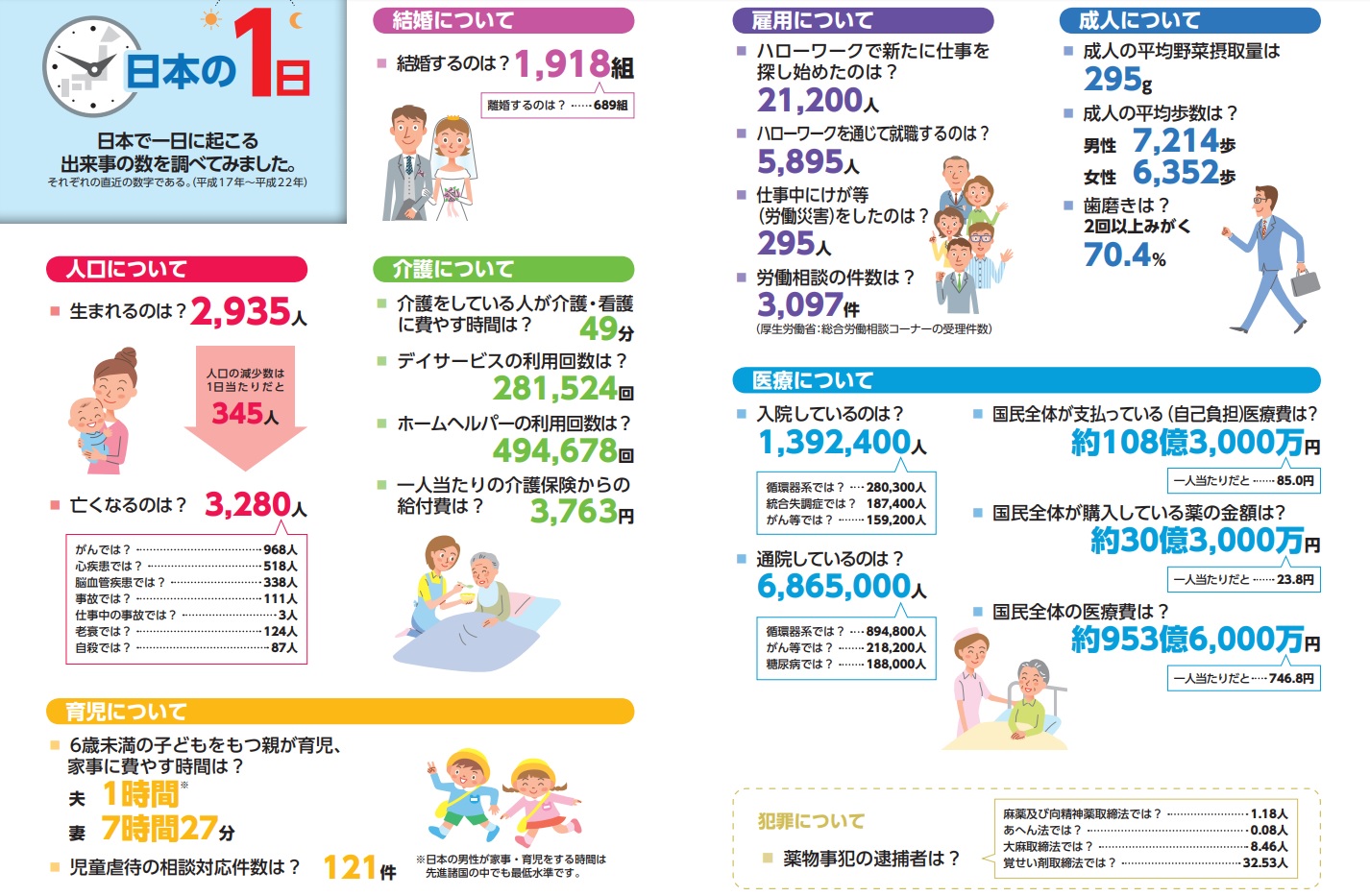 厚生労働省が発表している面白い資料をご紹介する。これが日本というひとつの国家で一日に起きている出来事の数値だ。約10年前のものだが、大きな誤差は無いだろう。