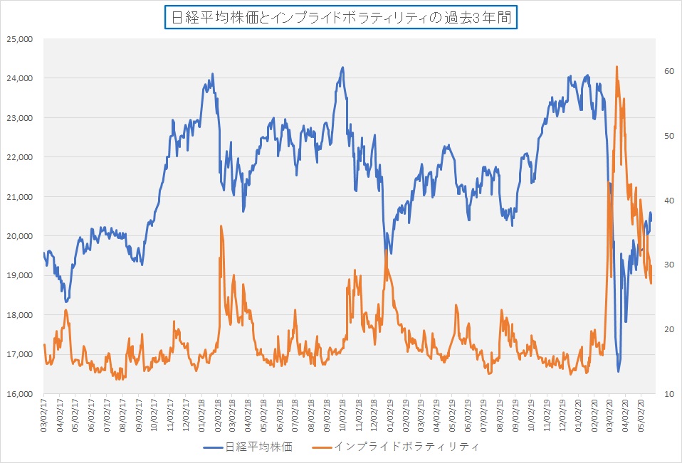 米国株と日本株、共に株価とボラティリティの関係は毎週お伝えしている通りで、新たな展開(2番底など)を予想させるものは無い。上段がいつもの米国株で、下段が日本株だ。3月下旬にボトムをつけたとお伝えして以来、順調に株価水準はどちらも上がっている。